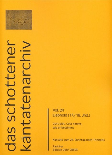 Der Artikel Liebhold: Gott gibt, Gott nimmt, wie er bestimmt für Oboe, zwei Violinen, Viola, Sopran, Alt, Tenor, Bass, 4stg. gem. Chor und Generalbass wurde in den Warenkorb gelegt.