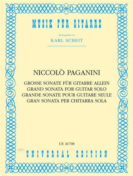 Paganini, N: Große Sonate für Gitarre allein. Grand Sonata f