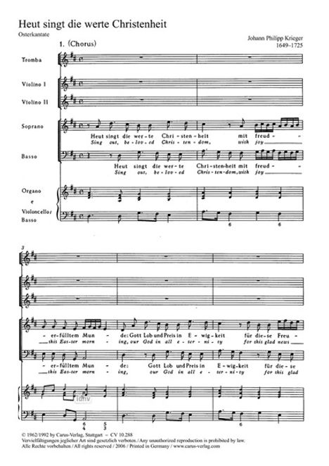 Johann Philipp Krieger: Heut singt die werte Christenheit D-Dur, Noten, Noten