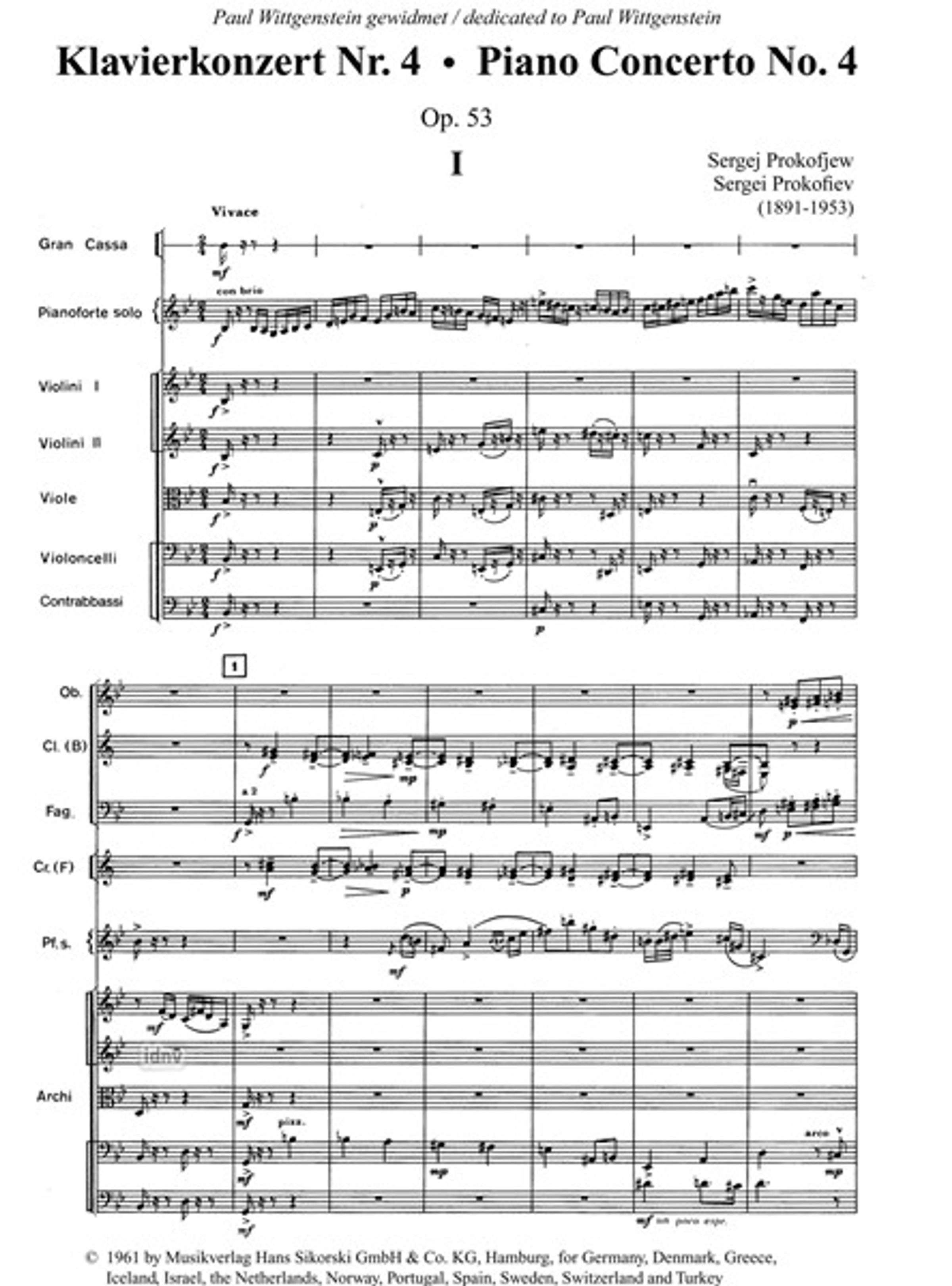 Sergej Prokofjew: Konzert Nr. 4 für Klavier und Orchester B-Dur op. 53 "Für die linke Hand"
