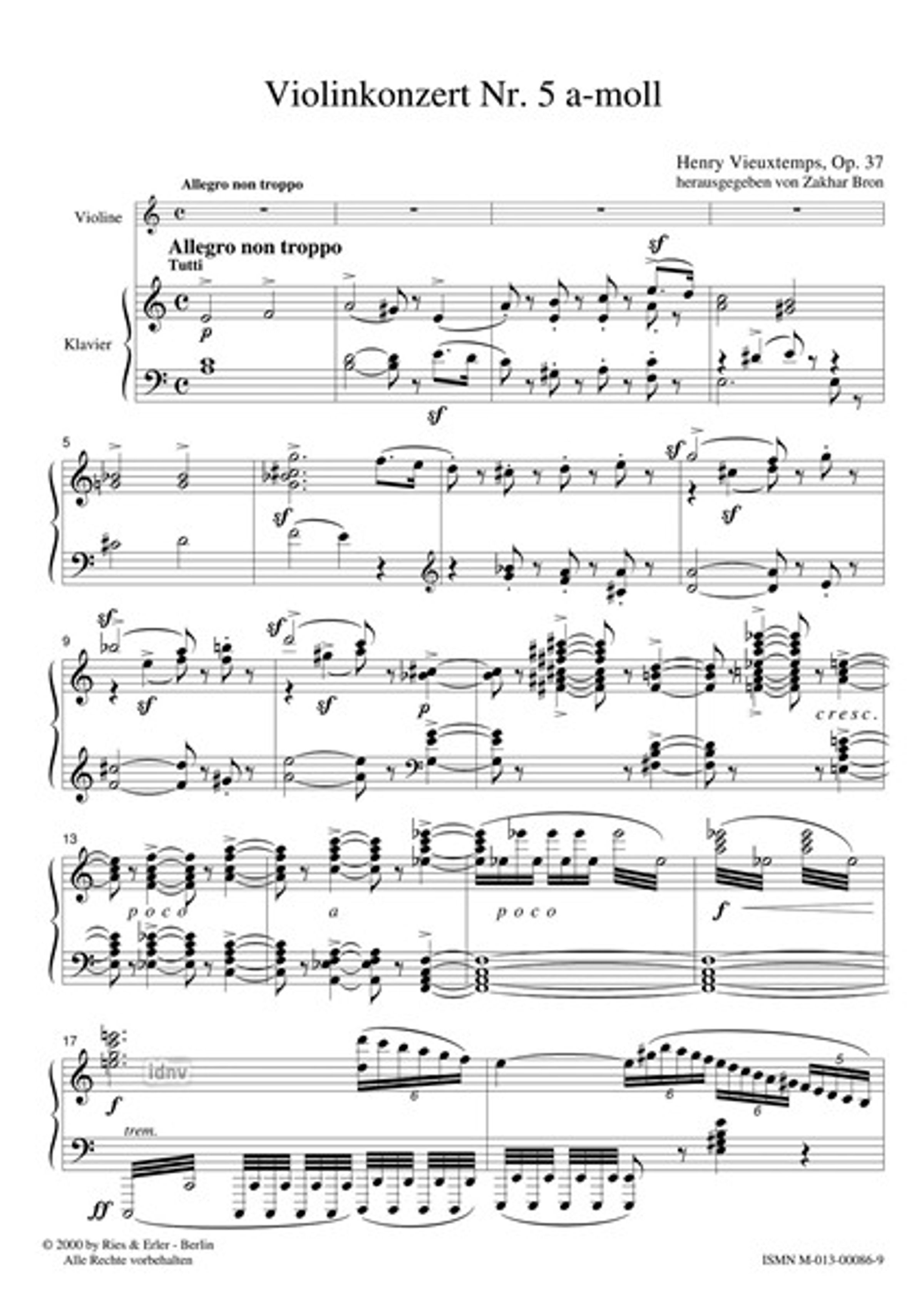 Henry Vieuxtemps: Konzert Nr. 5 a-Moll op. 37, Noten, Noten