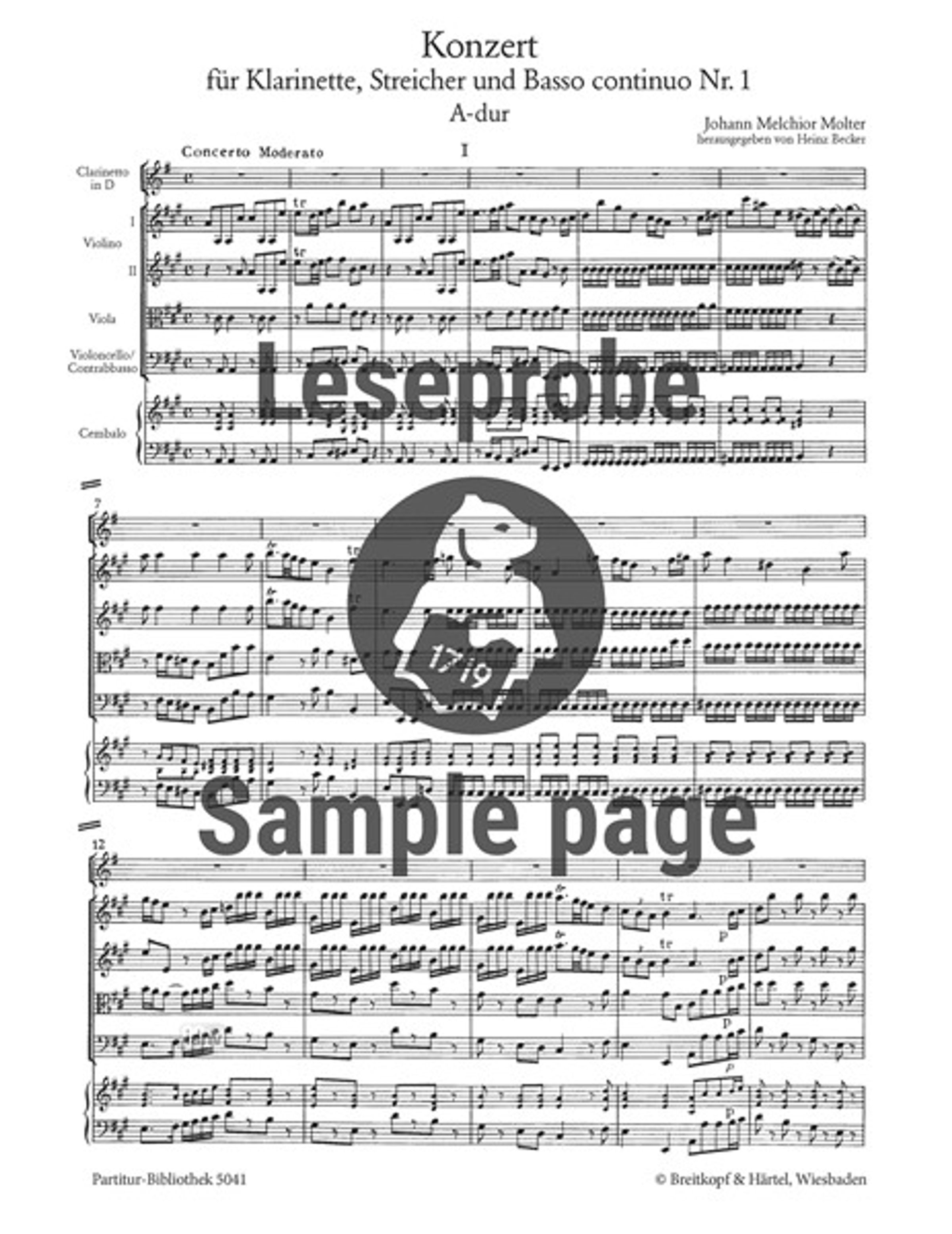 Johann Melchior Molter: Klarinettenkonzert Nr. 1 A-dur, Noten, Noten