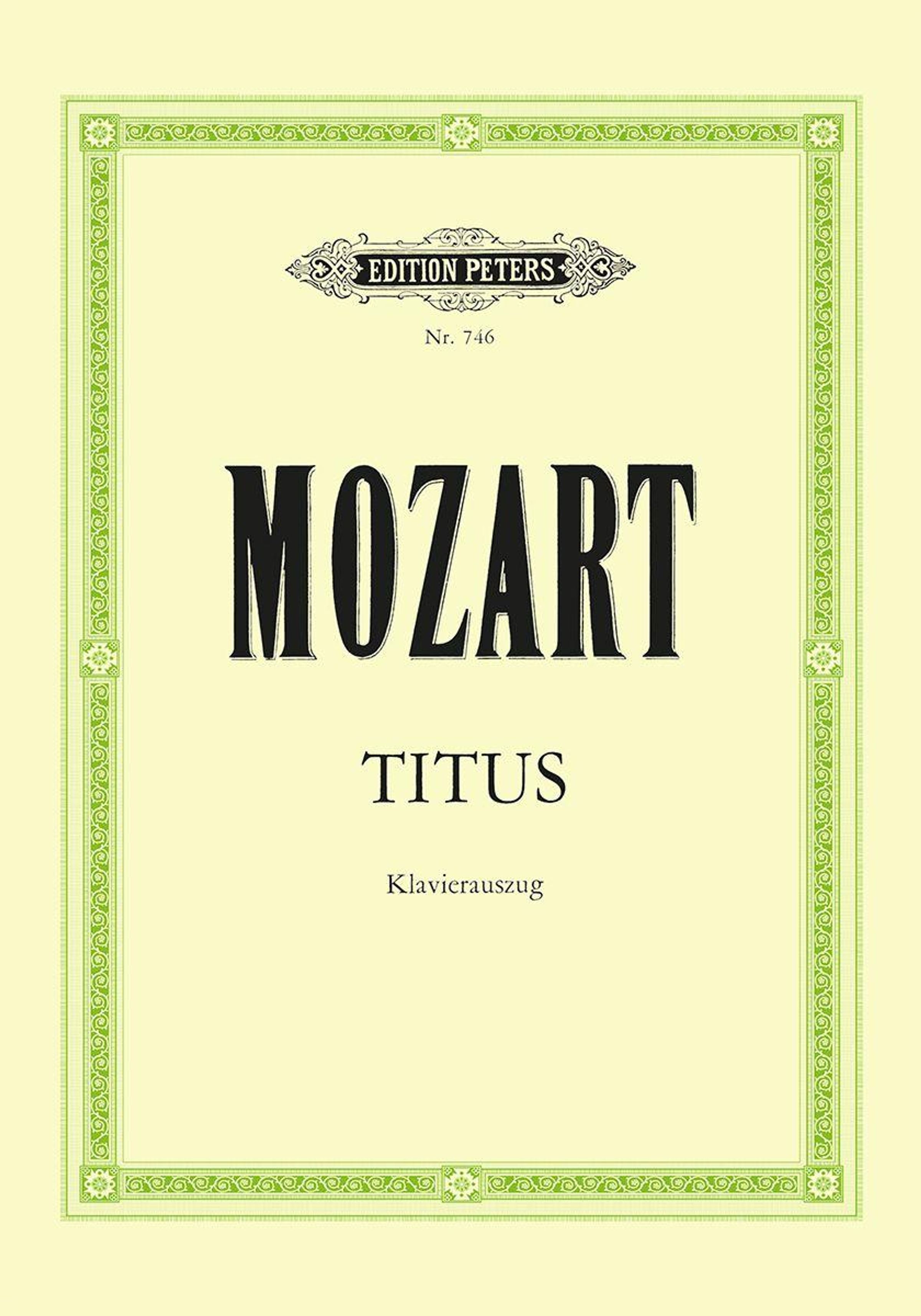 Mozarts Oper La clemenza di Tito (Titus) KV 621, Opera seria in zwei Akten nach einem italienischen Libretto von Caterino Mazzolà, herausgegeben als Klavierauszug von Gustav Kogel.