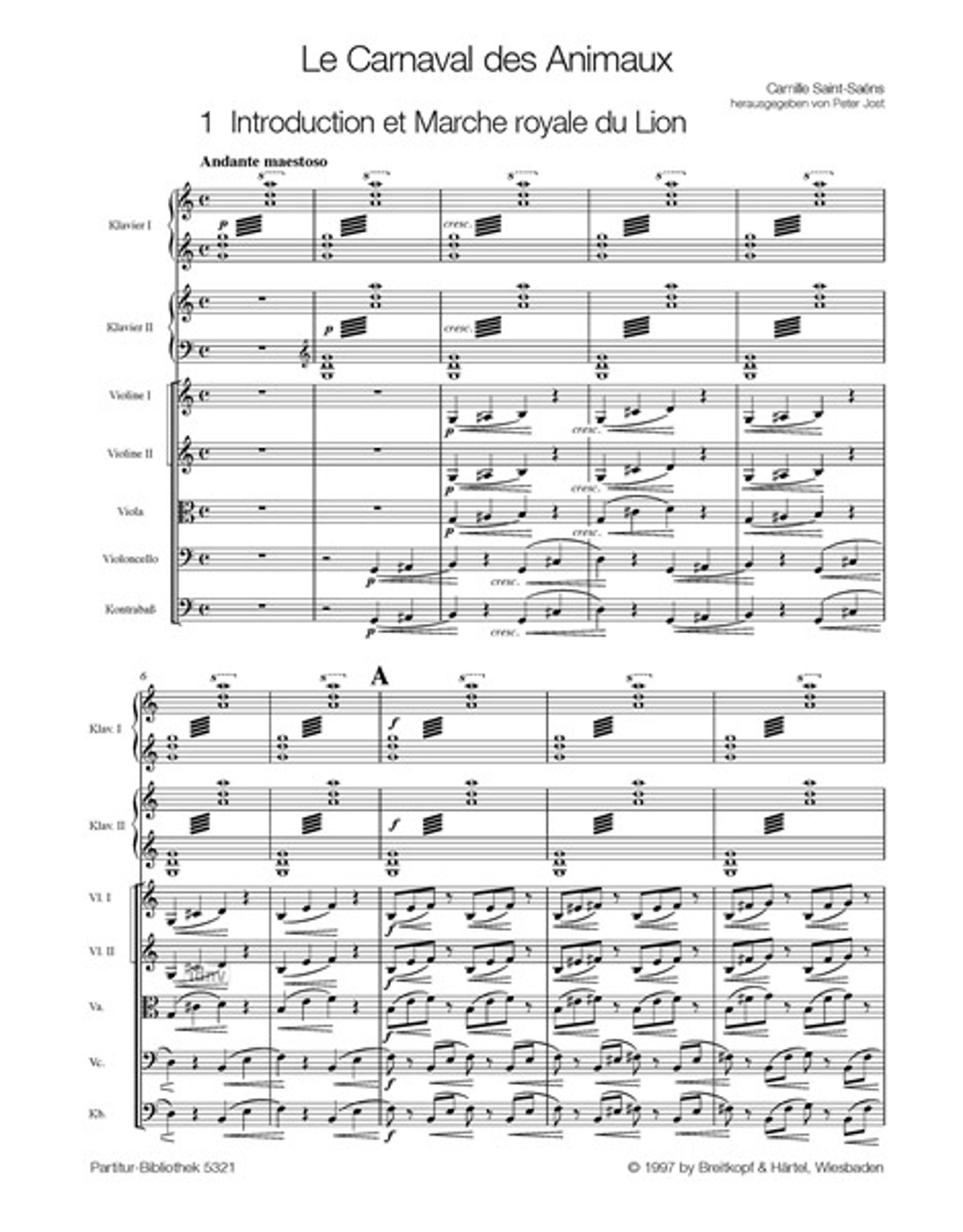 Le Carnaval des Animaux / Der Karneval der Tiere, Noten, Noten
