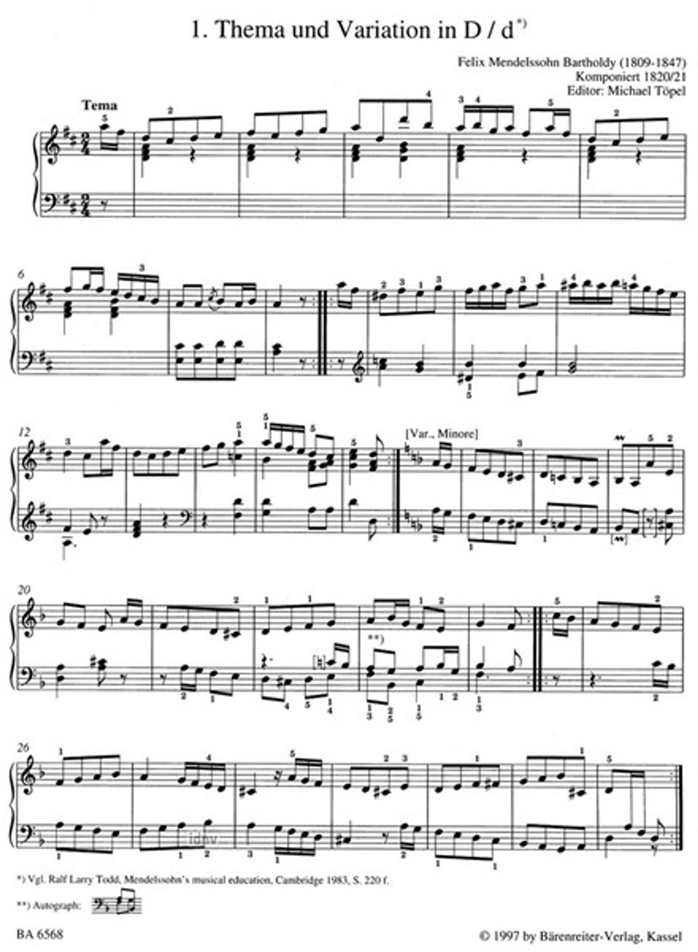 3. 3 Felix Mendelssohn Bartholdy: Thema mit Variationen D-Dur / d-Moll