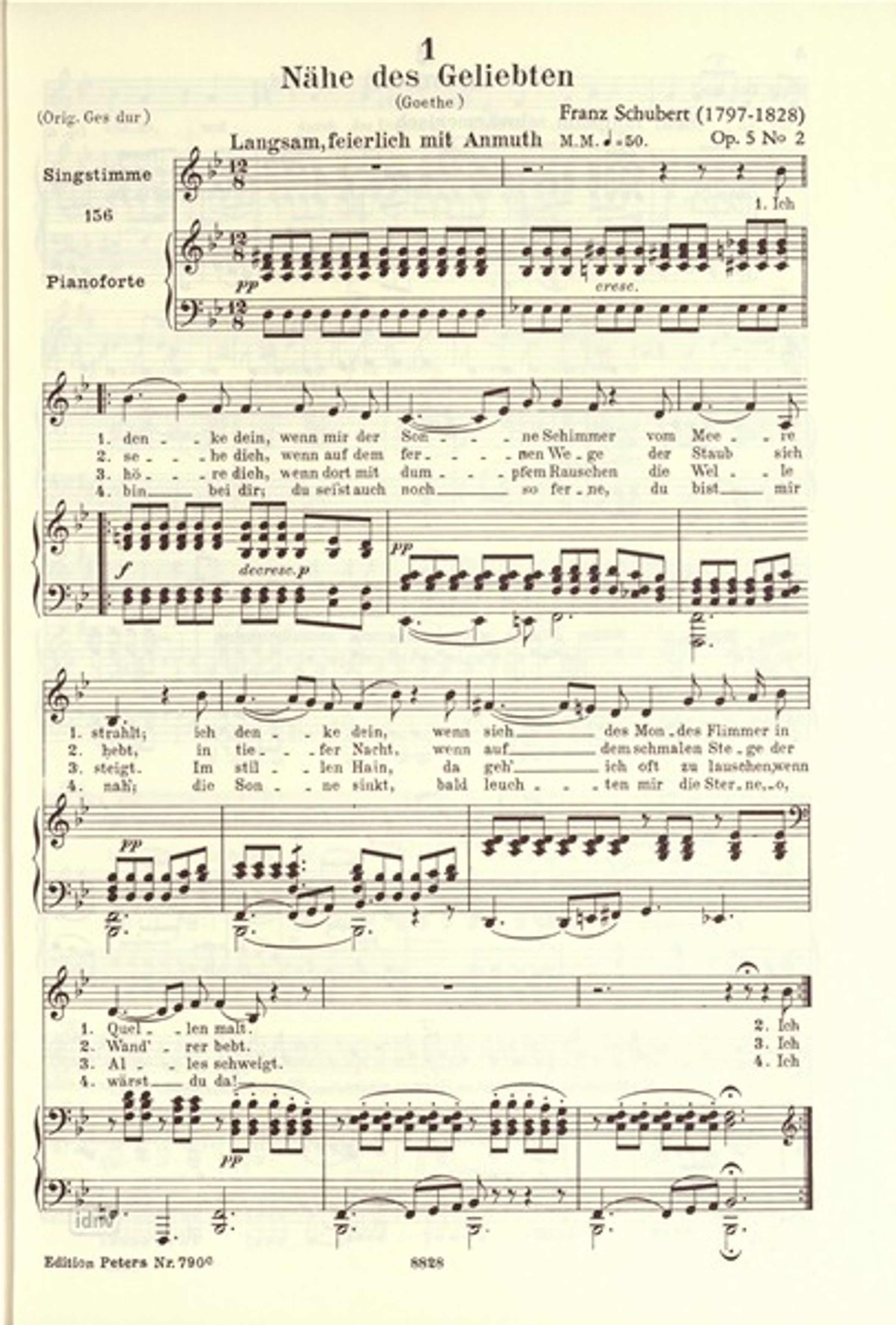 1 Nähe des Geliebten,"Ich denke dein" B-Dur op. 5 Nr. 2 D 162 (27. Februar 1815)
