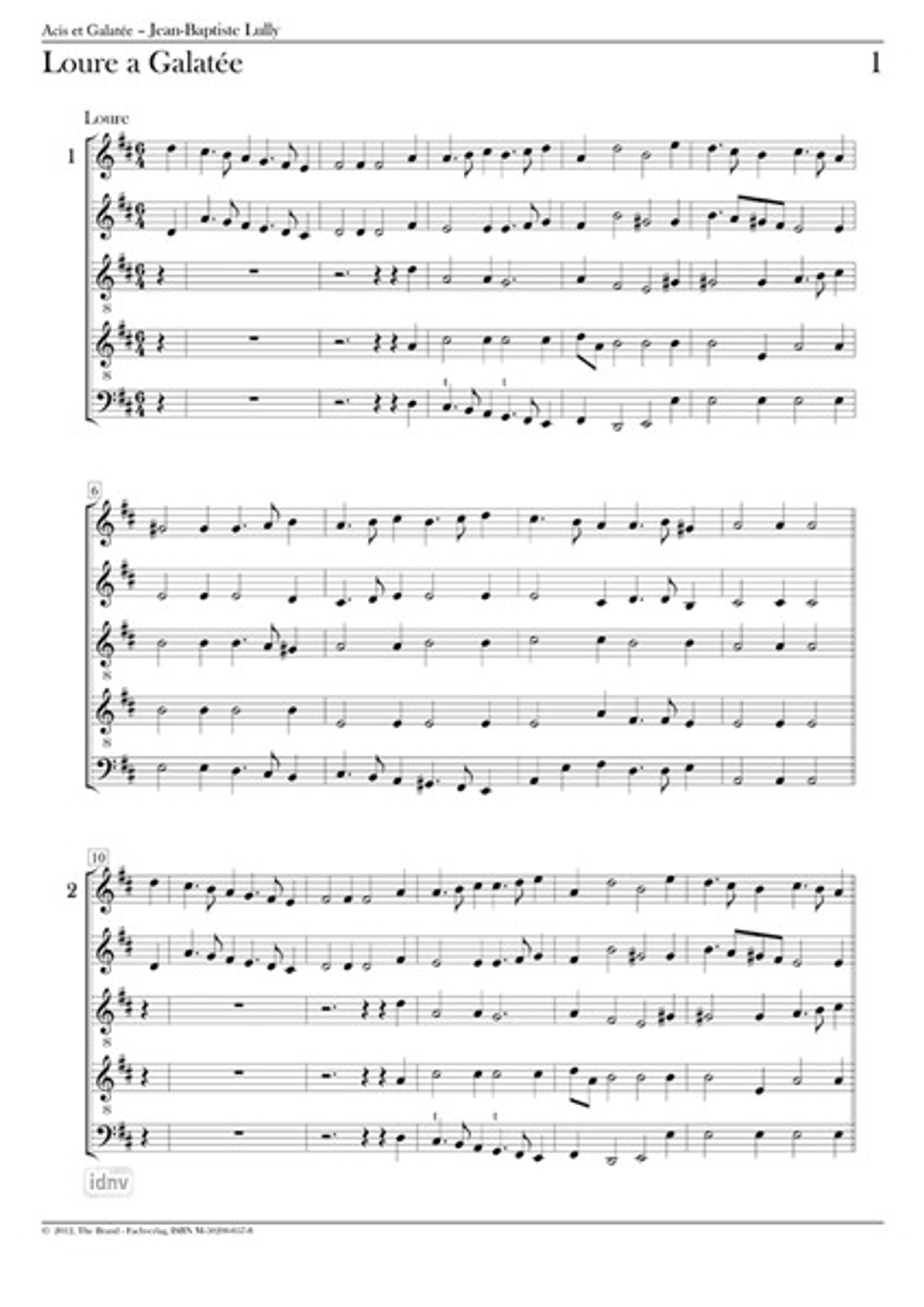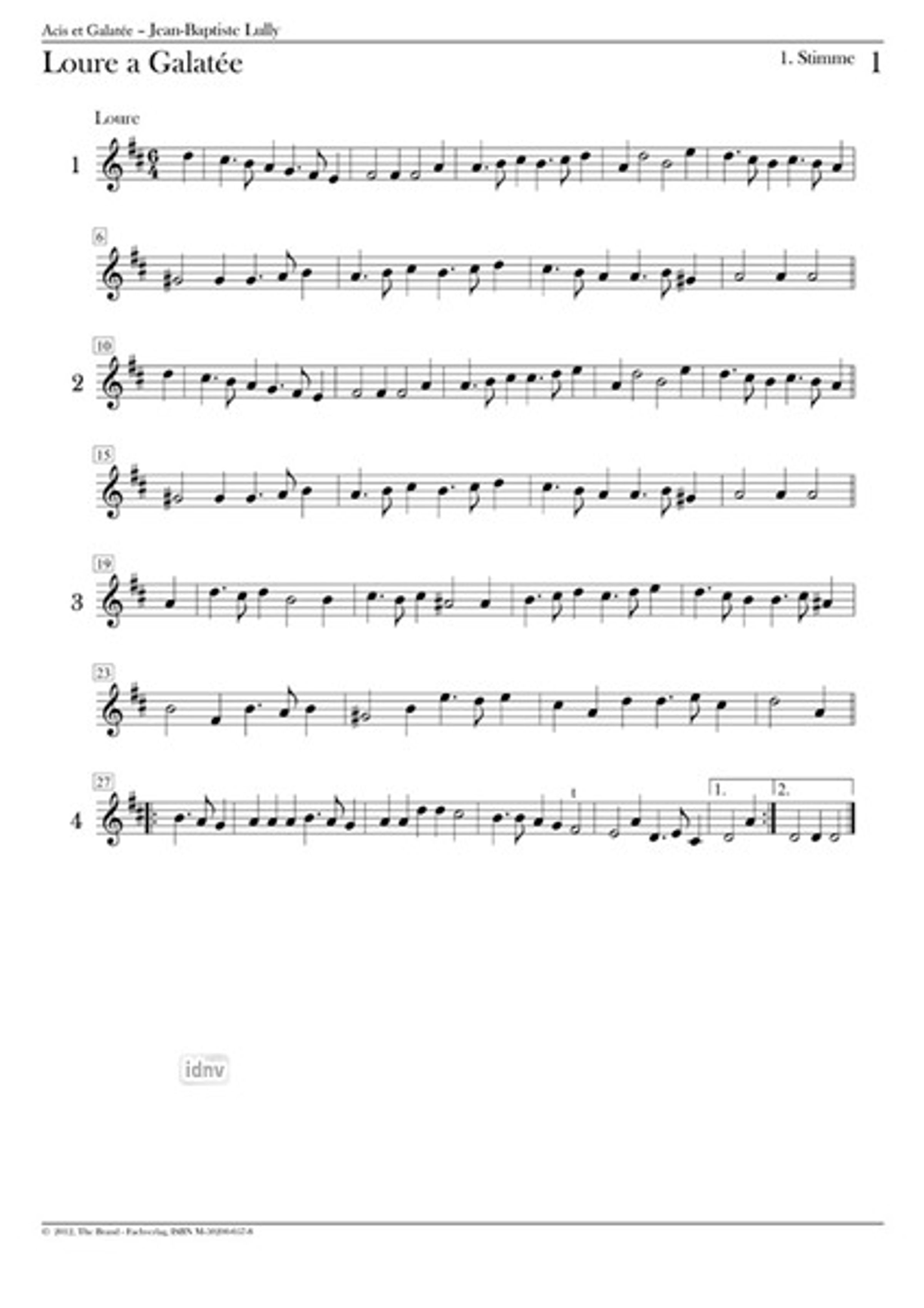 Jean-Baptiste Lully: Loure a Galatée op. Acis et Galatée LWV 73 "Partitur und Stimmen" (6. Sept. 1686 Anet)