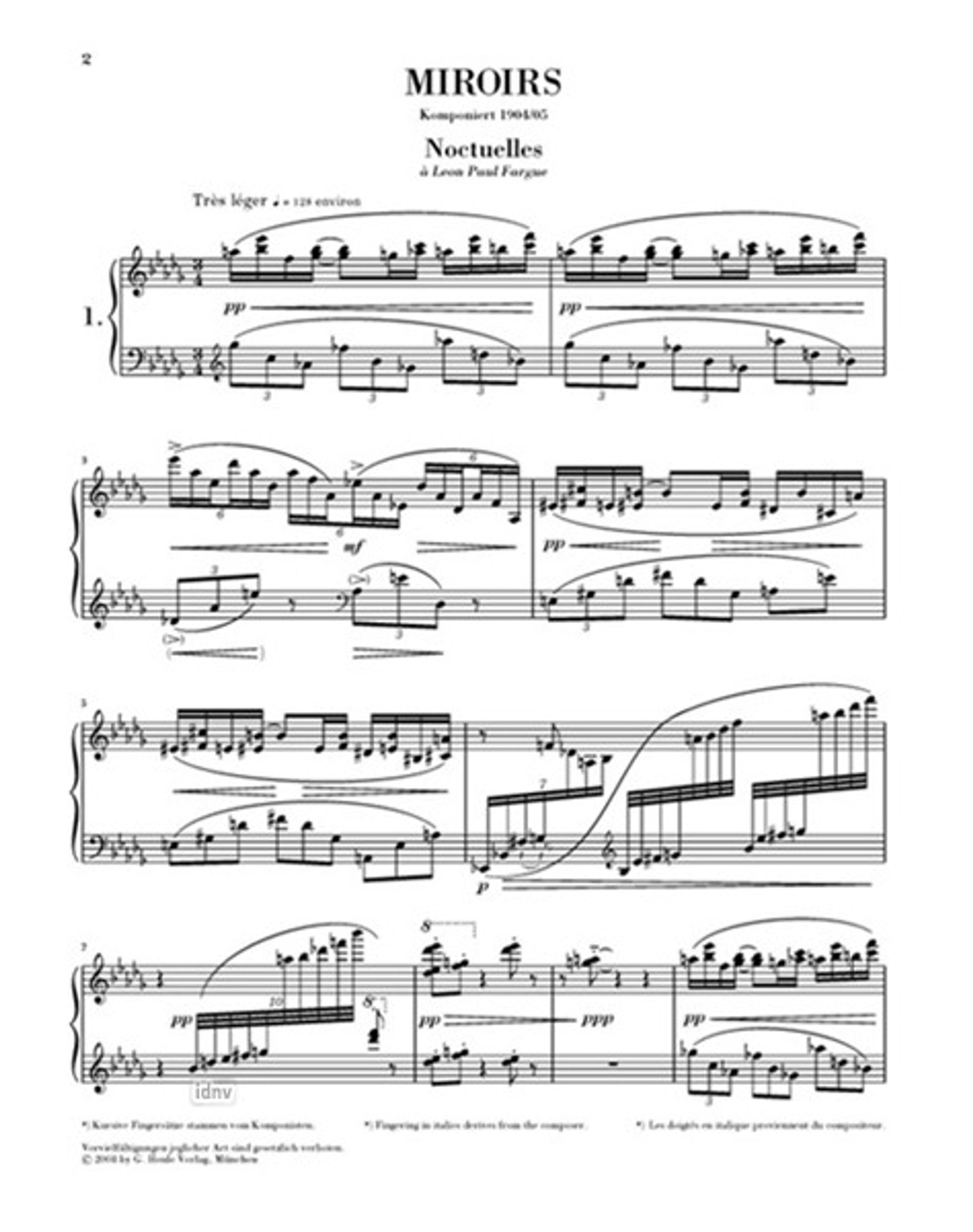 "Miroirs" - "Spiegelbilder" - diese fünf Klavierstücke widmete Ravel jeweils einem Mitglied des Pariser Künstlerkreises der "Apachen". Ravel gehörte jenem Zirkel von Dichtern, Malern und Musikern selbst an und führte viele seiner Werke erstmals bei Zusammenkünften dieses illustren Kreises auf. In seinen "Miroirs" ging er noch einen Schritt weiter als in den "Jeux d'eau": Wie improvisiert, wie aus einem Skizzenbuch sollte die Musik klingen. Die kühne Harmonik verstörte zunächst seine Zeitgenossen, war jedoch richtungsweisend für Ravels weiteres Euvre. Dieser beliebte Zyklus - er enthält u. a. das bekannte "Alborada del gracioso" - ist nun, versehen mit einem ausführlichen Kommentarteil, im besonders übersichtlichen, vergrößerten Format in Henle-Urtextqualität erhältlich.