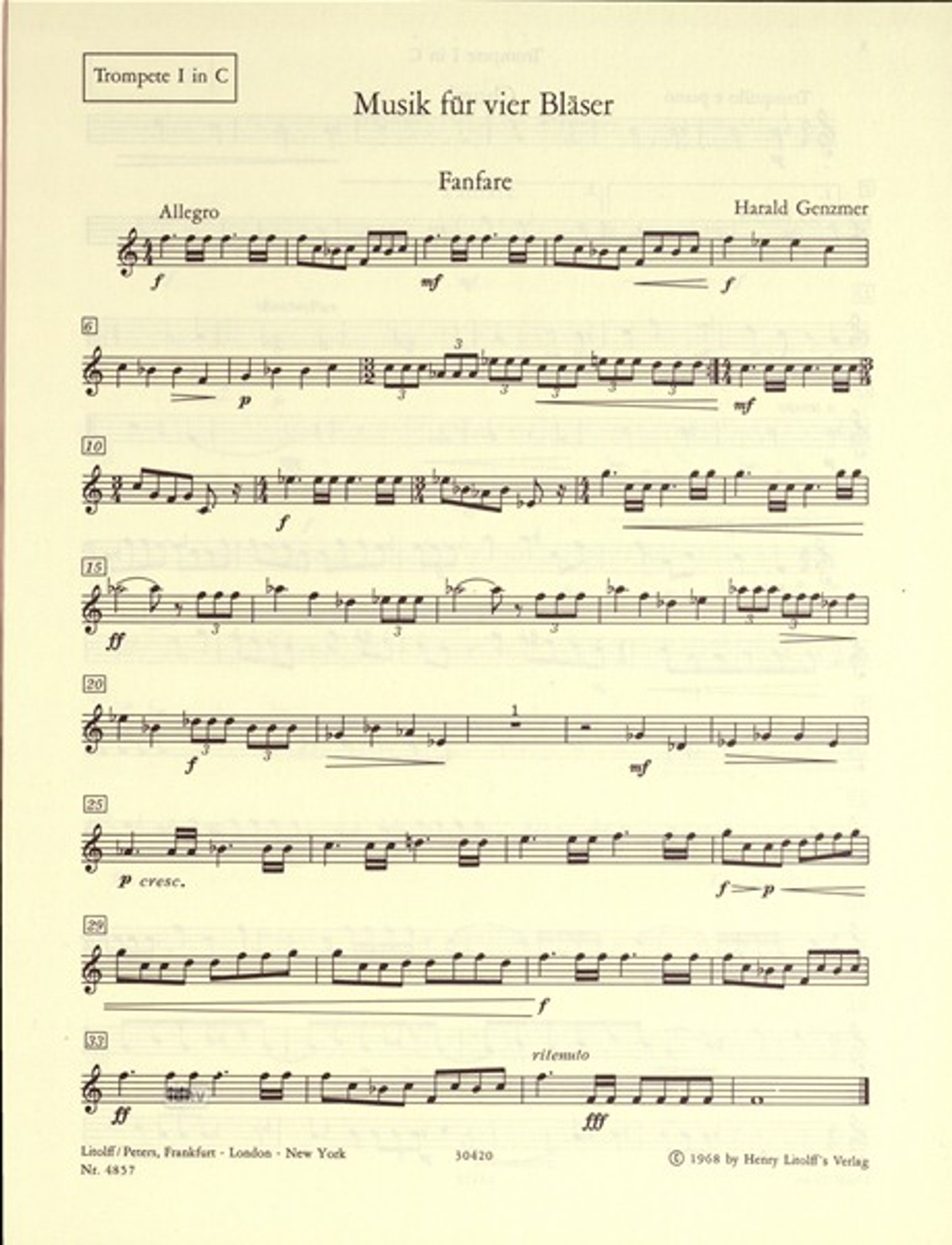 Harald Genzmer: Musik für 4 Bläser für 2 Trompeten (C) und 2 Posaunen