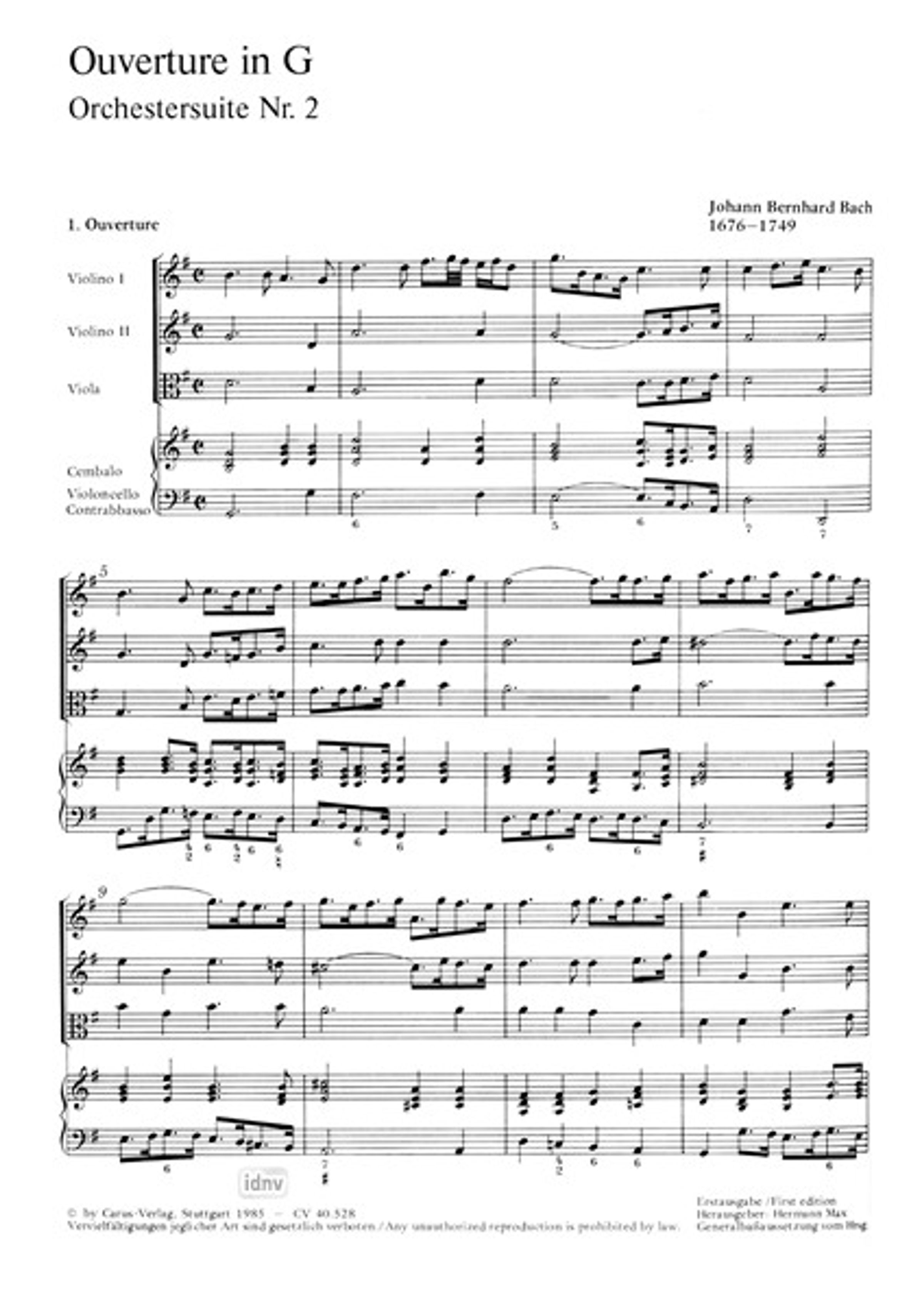 Johann Bernhard Bach: Orchestersuite Nr. 2 G-Dur, Noten, Noten