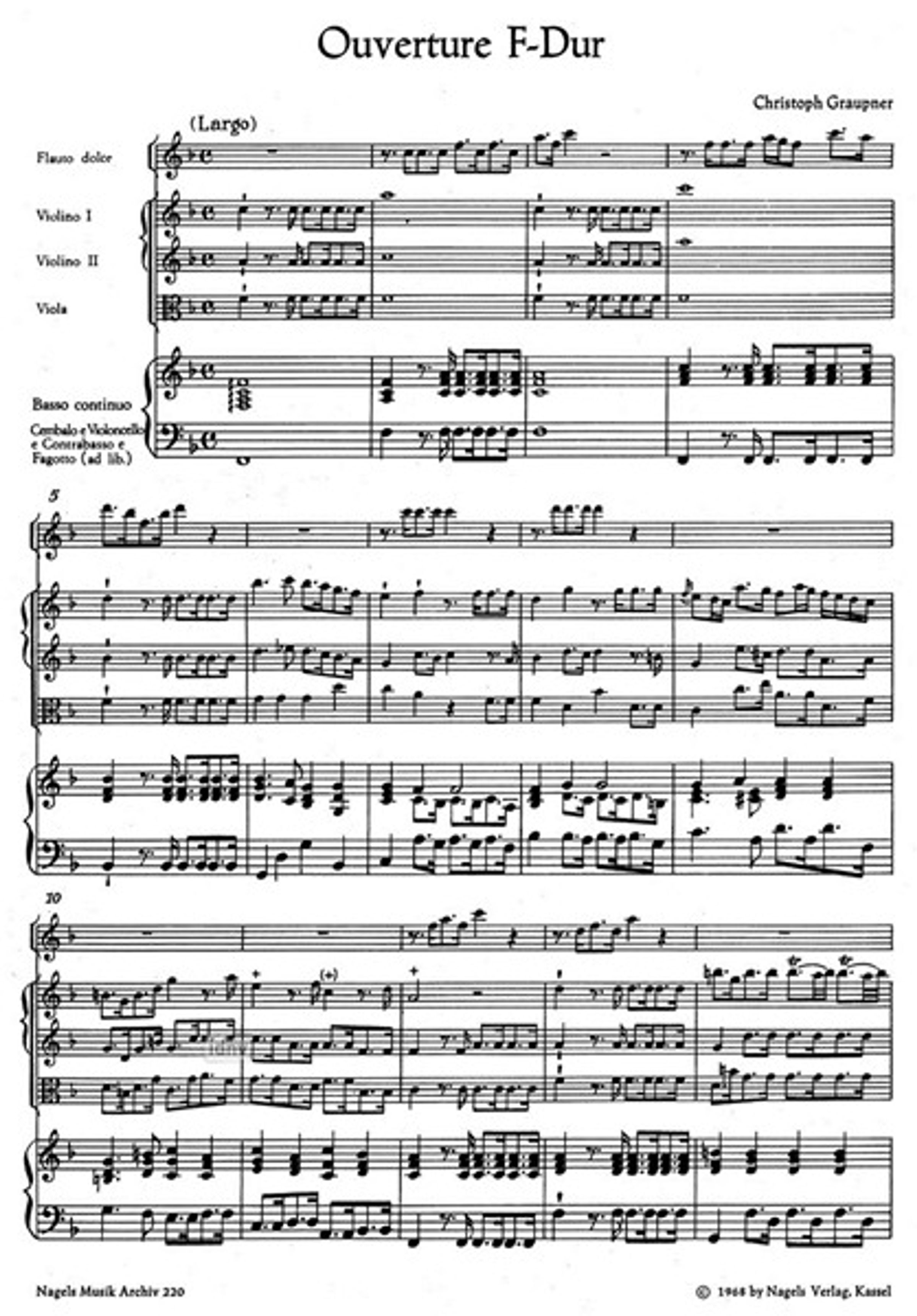 Christoph Graupner: Ouvertüre für Altblockflöte, Streicher und Basso continuo F-Dur