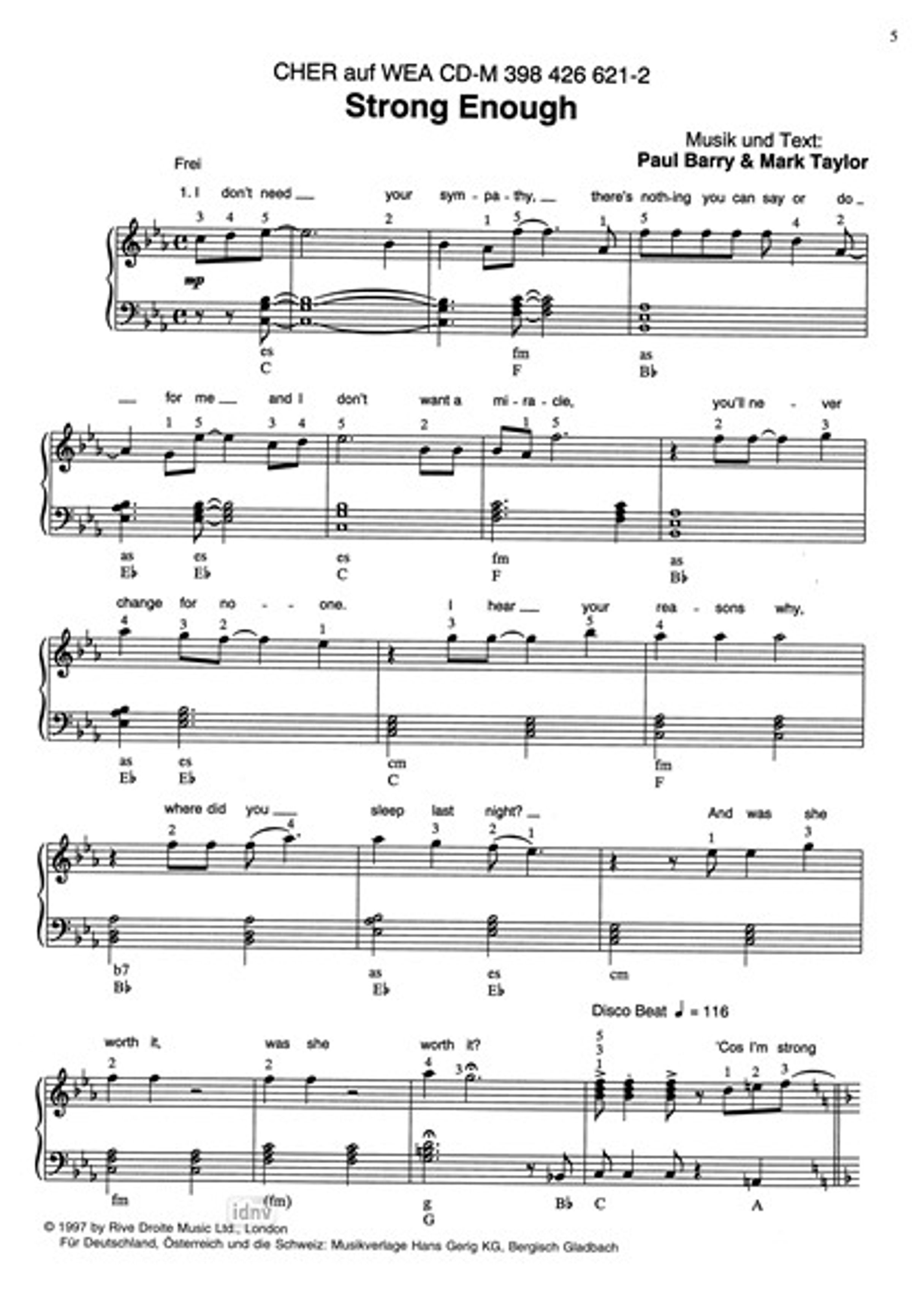 Popmusik Hit-Album Super 20: International 6, Noten