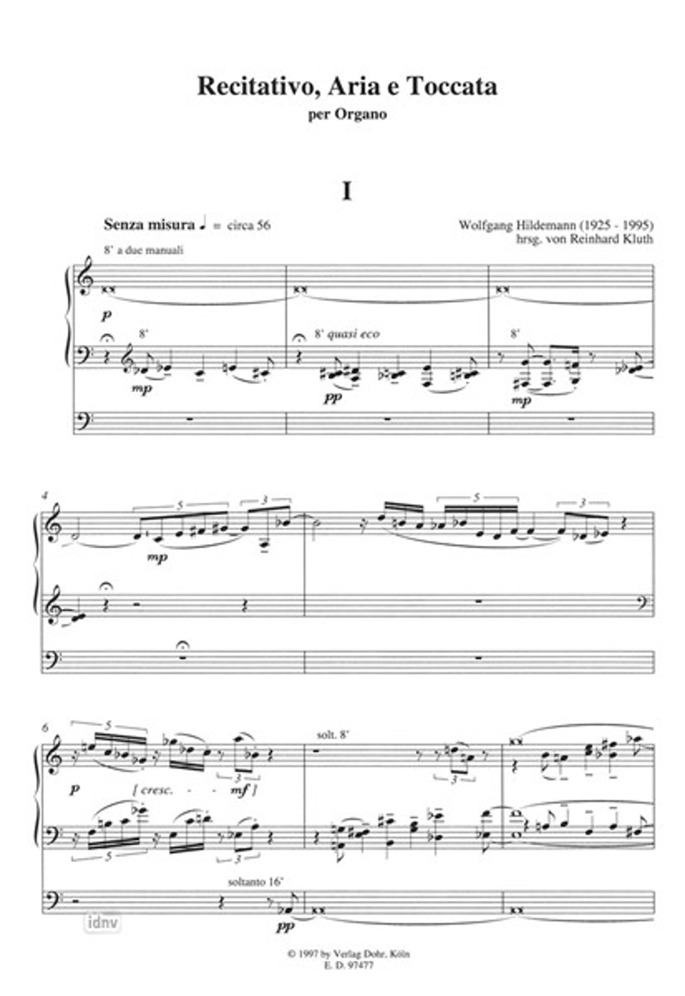 Wolfgang Hildemann: Recitativo, Aria e Toccata per organo (1990), Noten, Noten