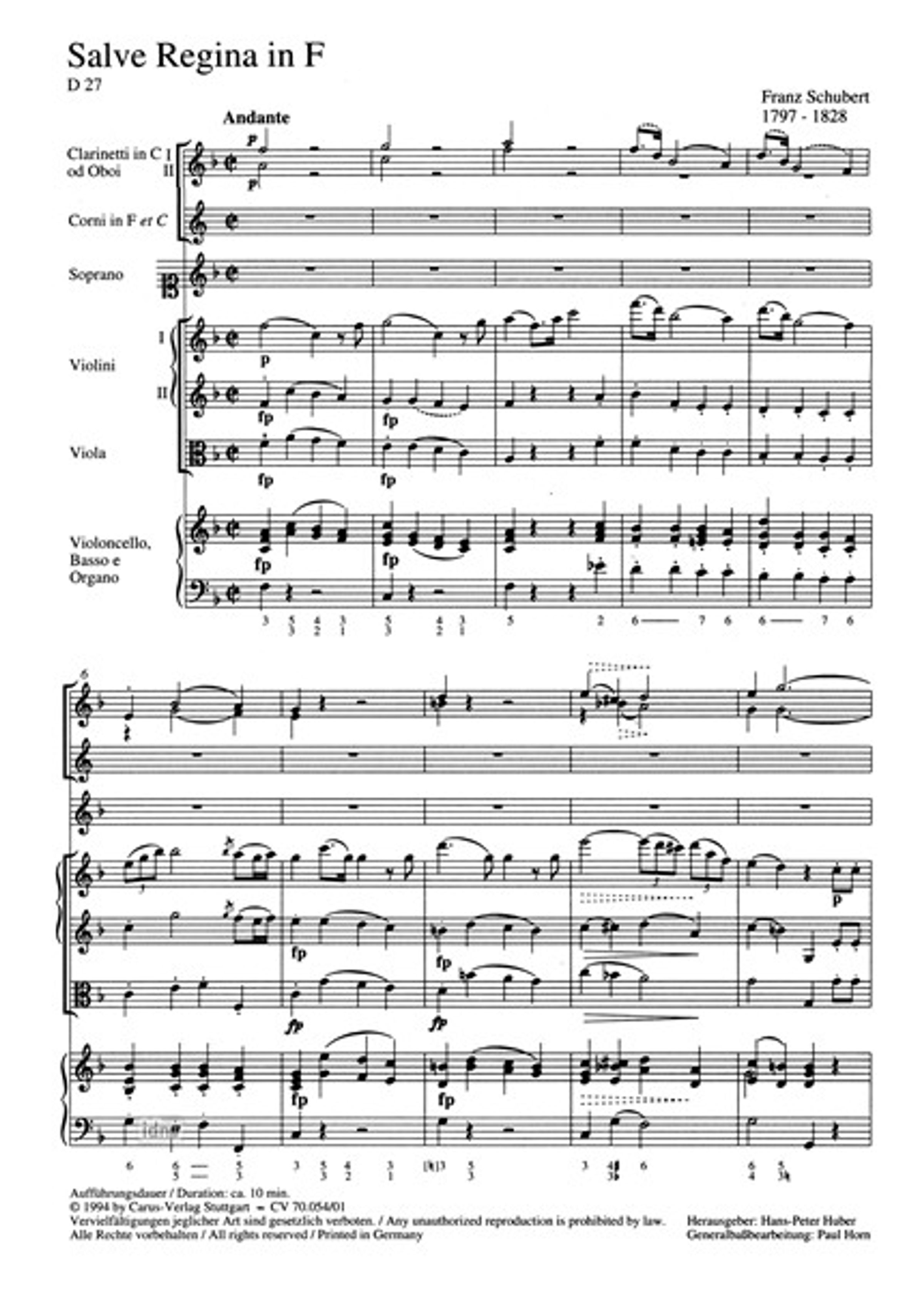 Franz Schubert: Salve Regina in F F-Dur D 27 (1812)
