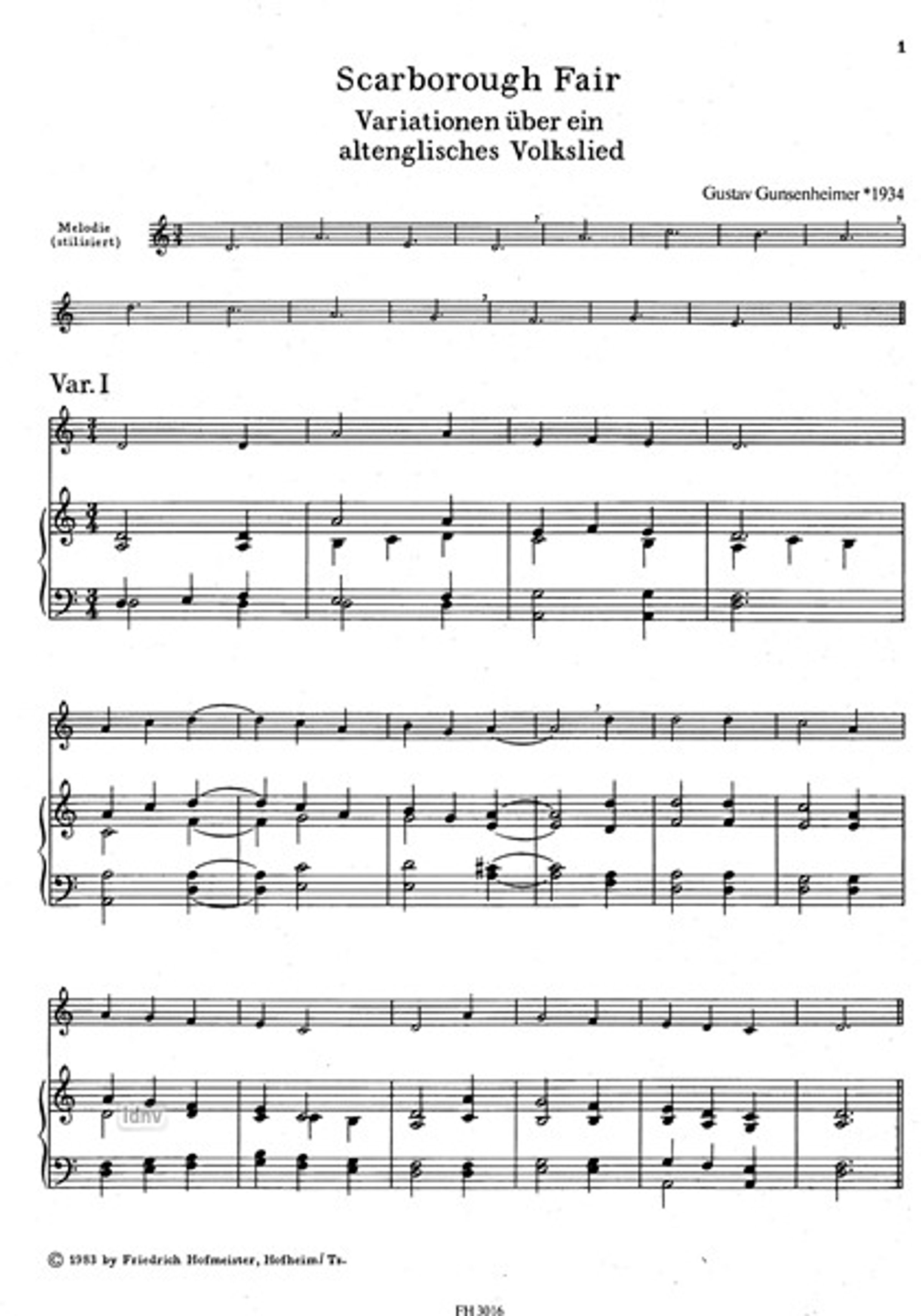 Gustav Gunsenheimer: Scarborough Fair, Noten, Noten