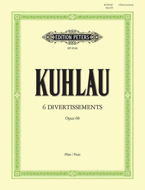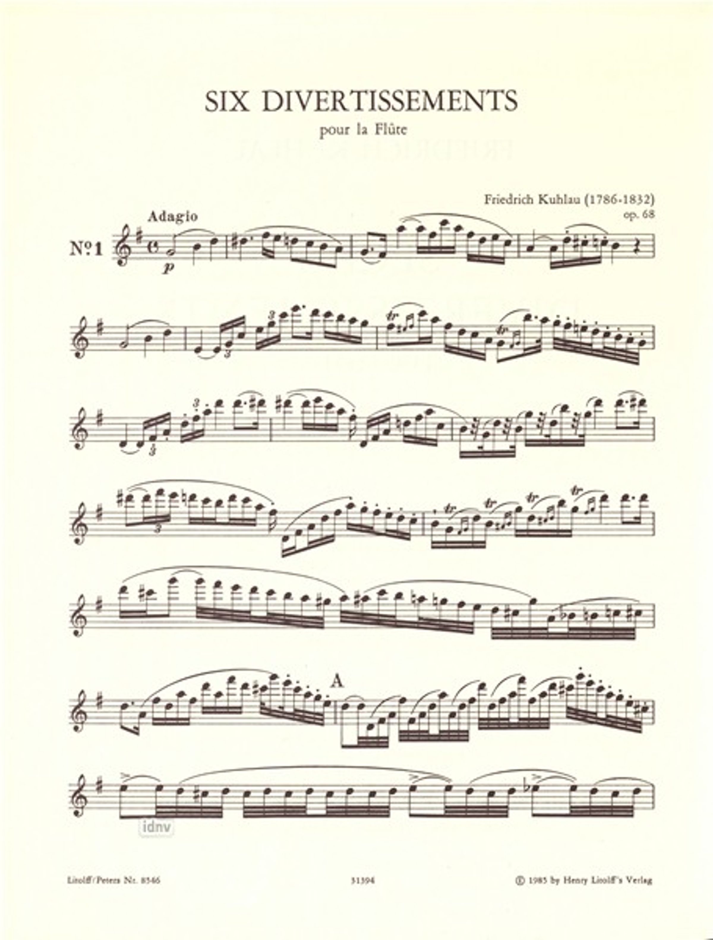 Sechs Divertissements op. 68für Flöte wurde von dem dänischen Pianisten und Komponisten Friedrich Kuhlau geschrieben und von Paul Taffanel herausgegeben.