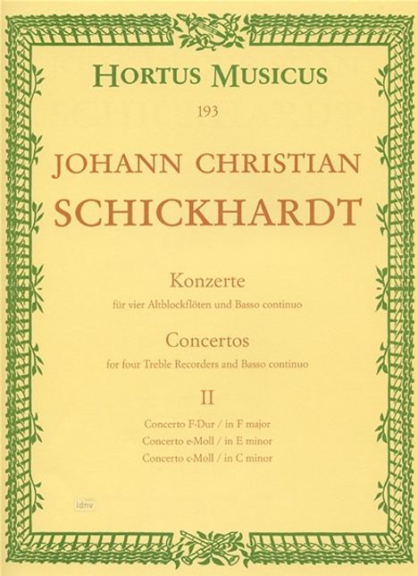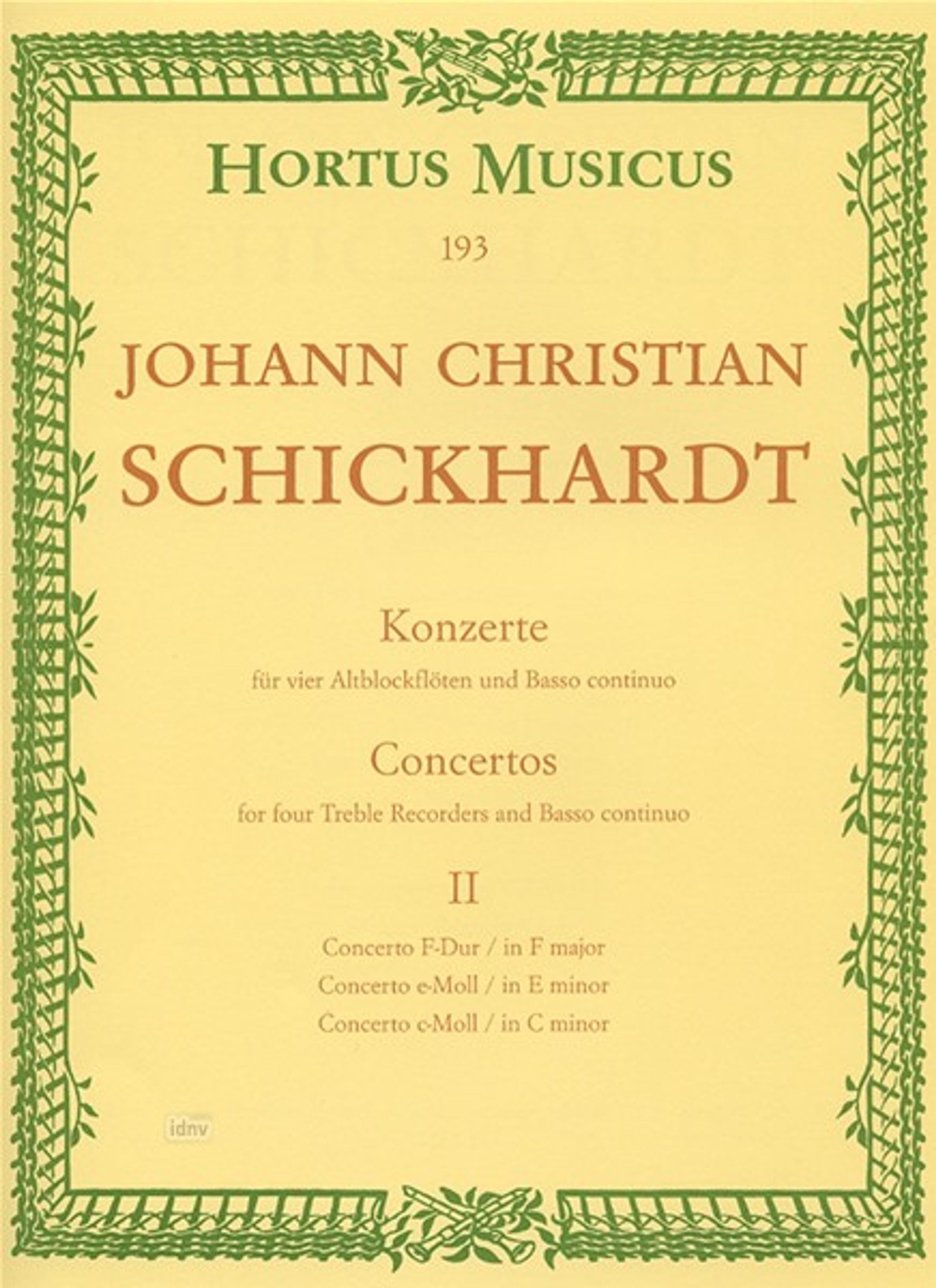 Johann Christian Schickhardt: Konzerte für vier Altblockflöten und Basso continuo