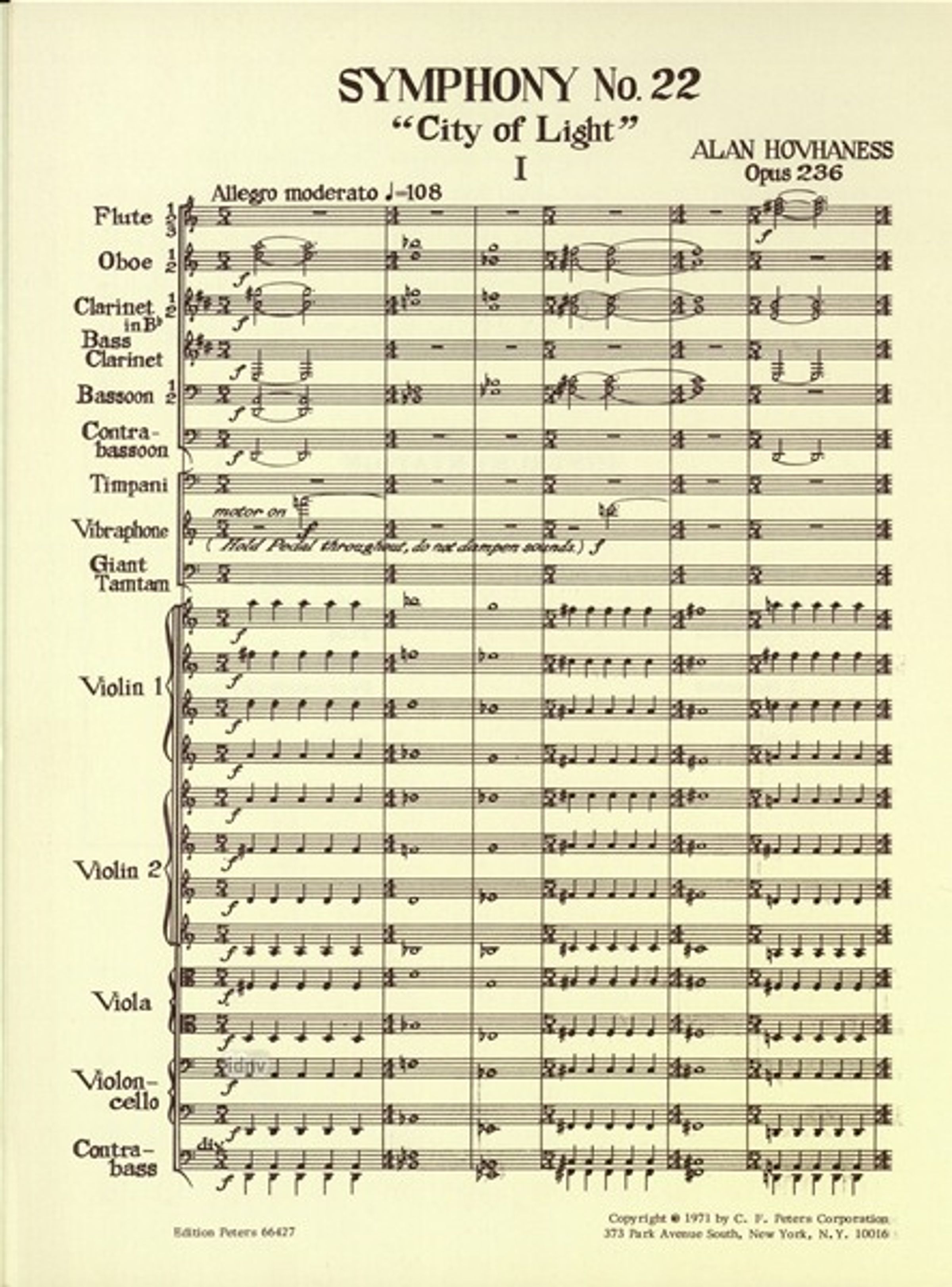 Alan Hovhaness: Sinfonie für Orchester Nr. 22 op. 236 "City of Light"