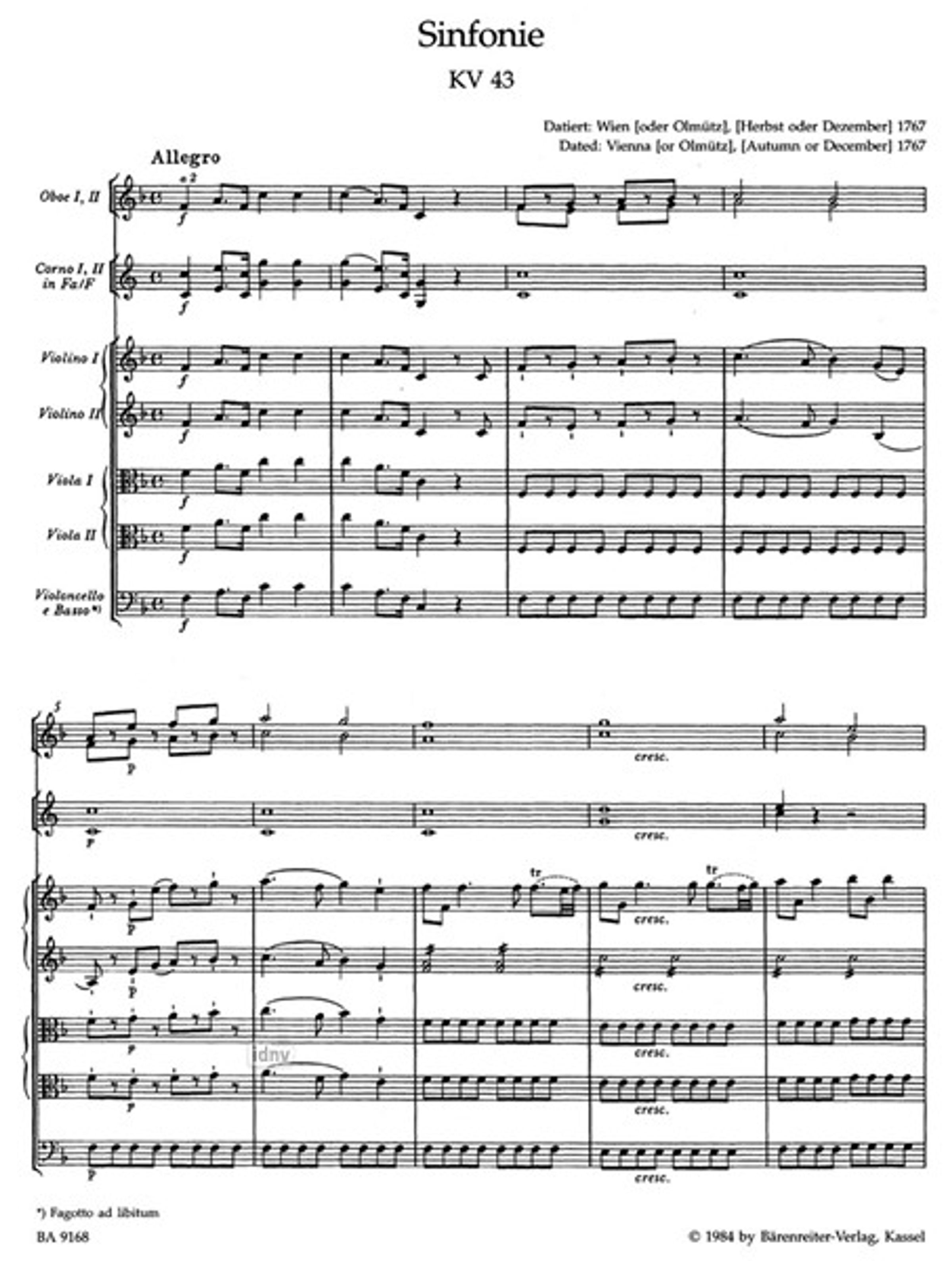 Wolfgang Amadeus Mozart: Sinfonie Nr. 6 F-Dur KV 43