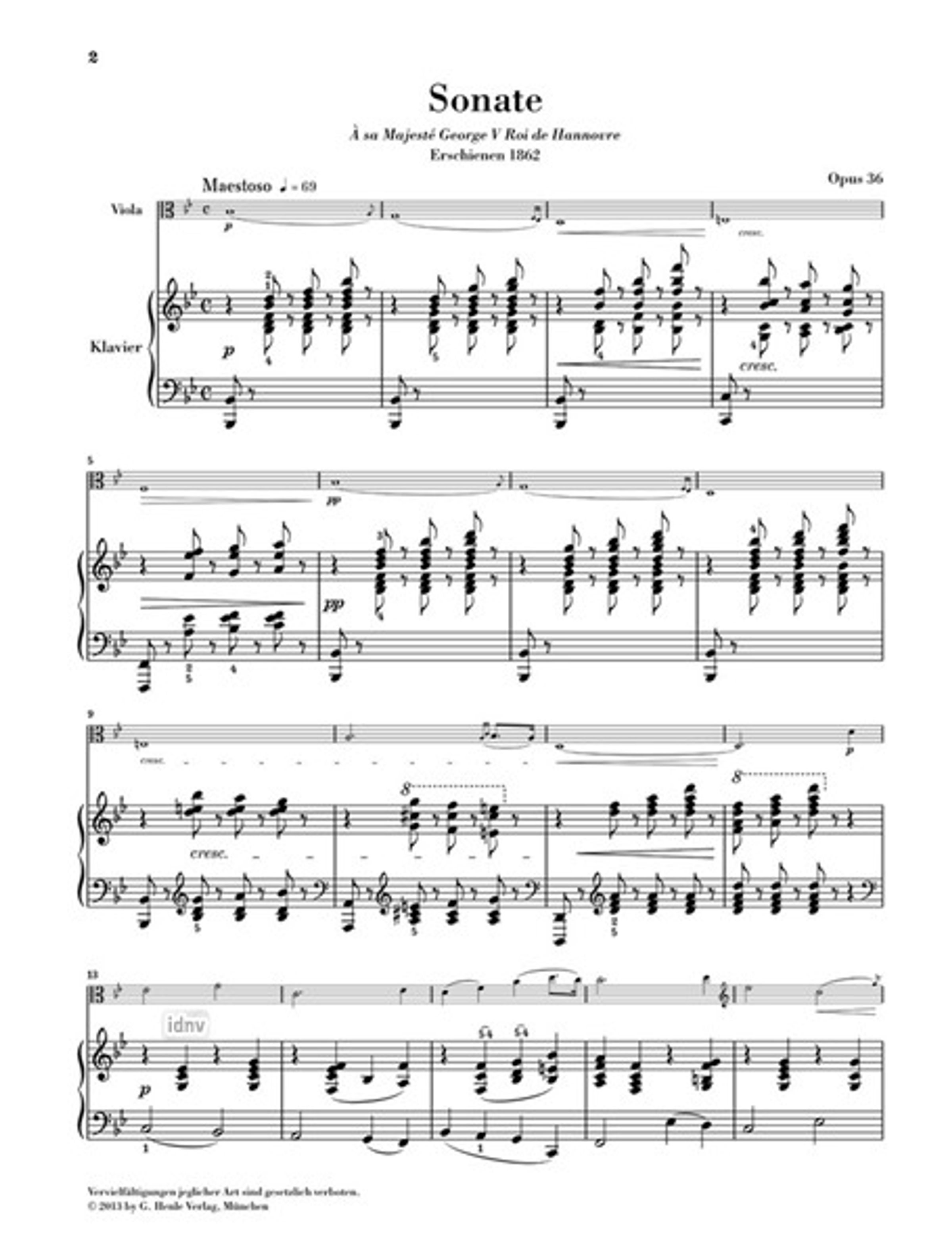 Henry Vieuxtemps: Sonate B-dur Opus 36 für Klavier und Viola, Noten, Noten
