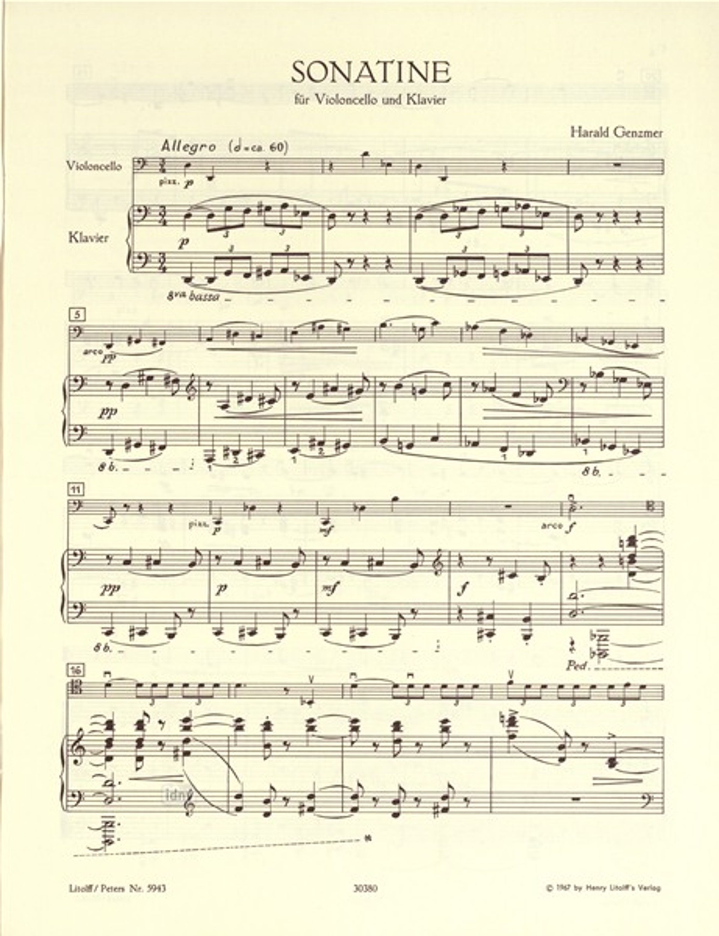 Harald Genzmer: Sonatine für Violoncello und Klavier Nr. 1 (1967)