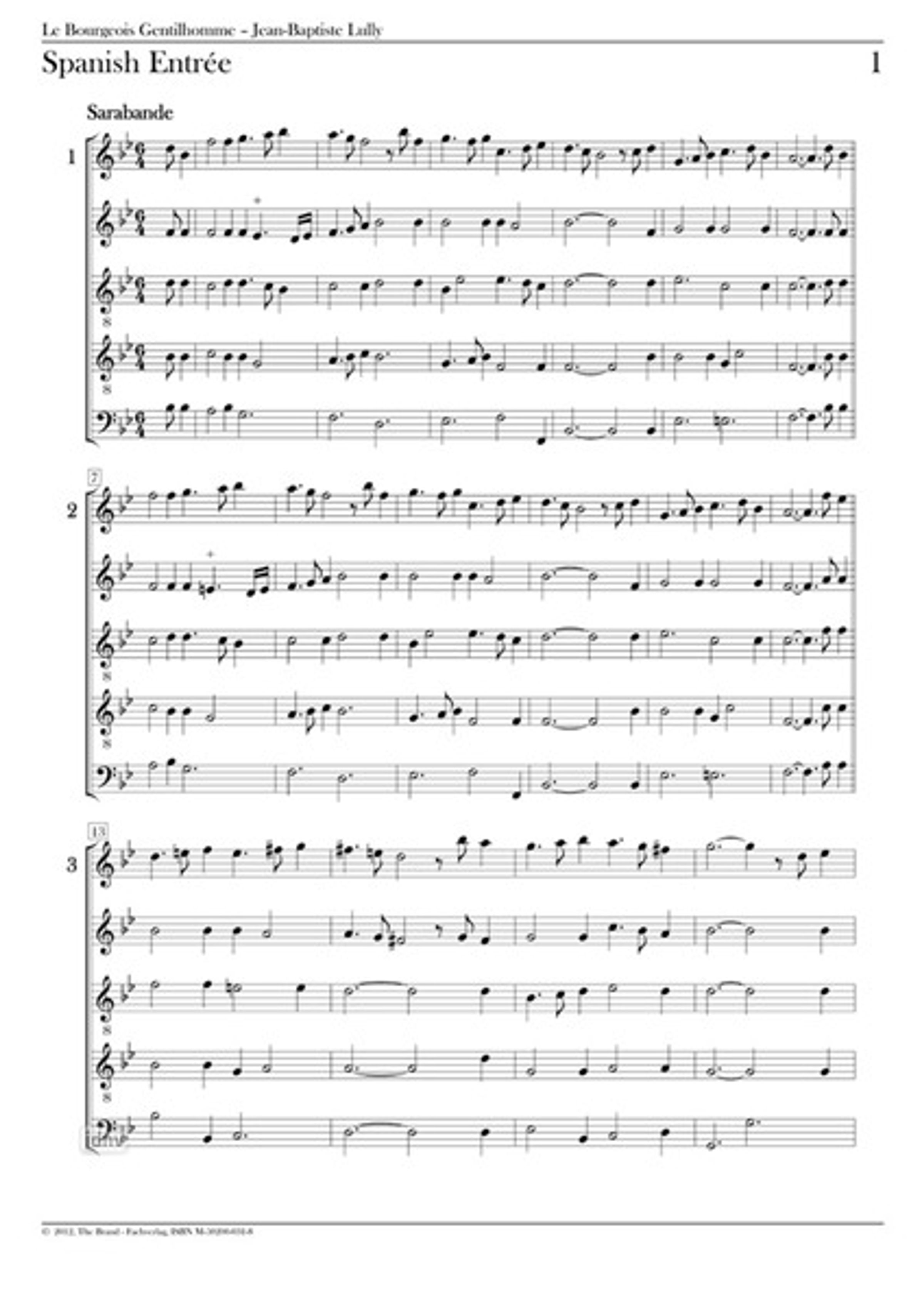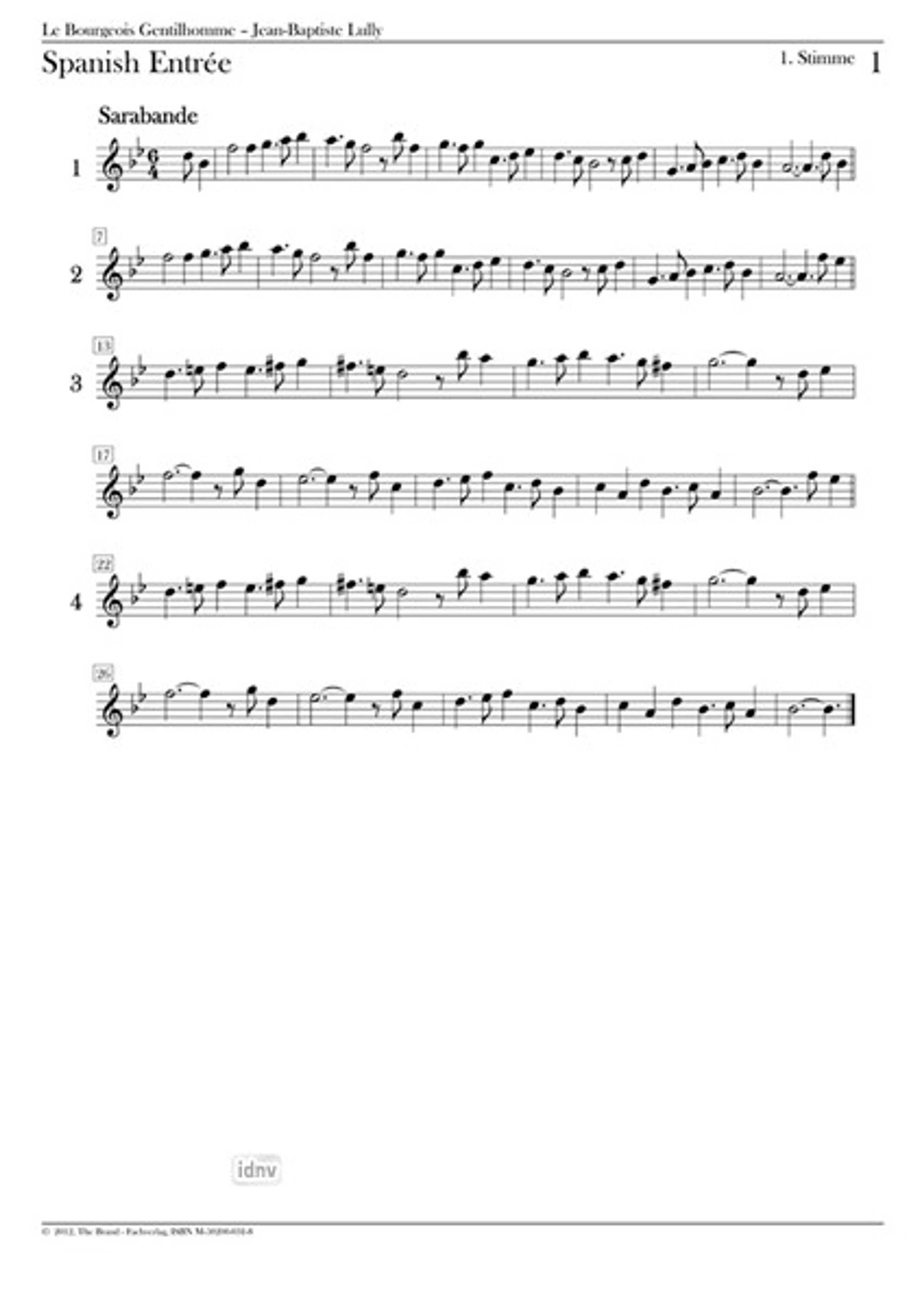 Jean-Baptiste Lully: Spanish Entrée op. Le Bourgeois Gentilhomme LWV 43 "Partitur und Stimmen" (14. Okt. 1670,...