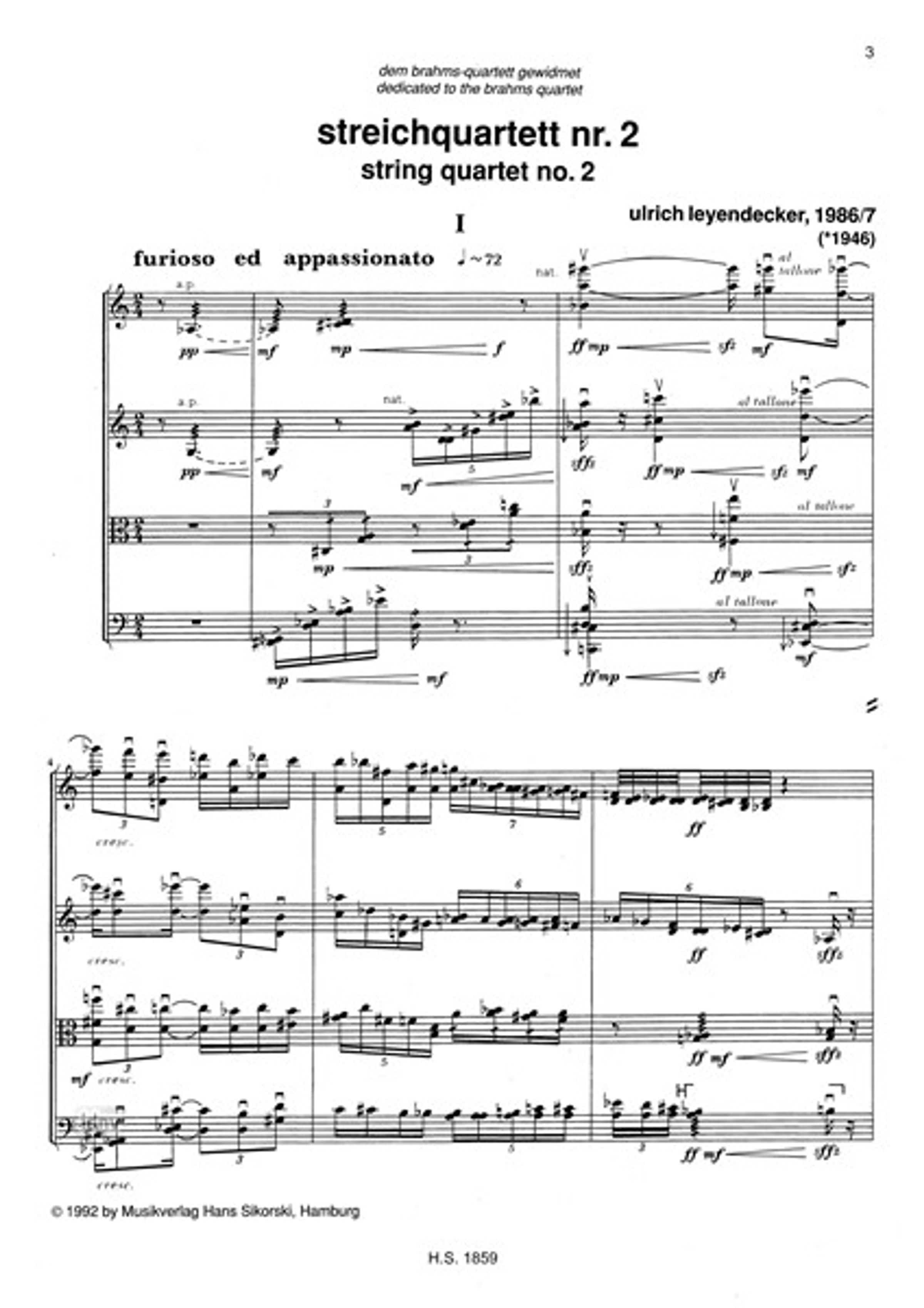 Ulrich Leyendecker: Streichquartett Nr. 2