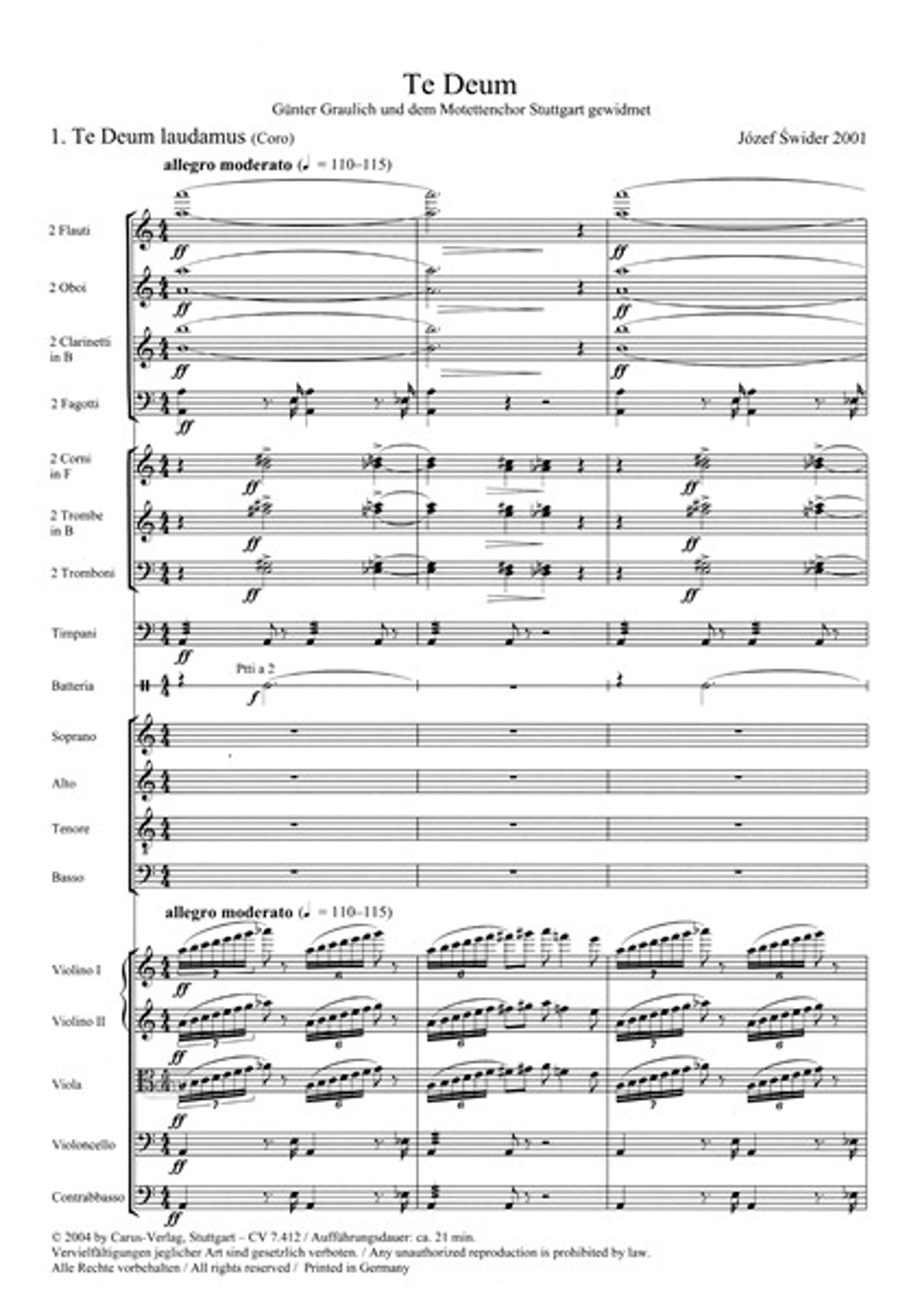Jozef Swider: Te Deum (2001), Noten