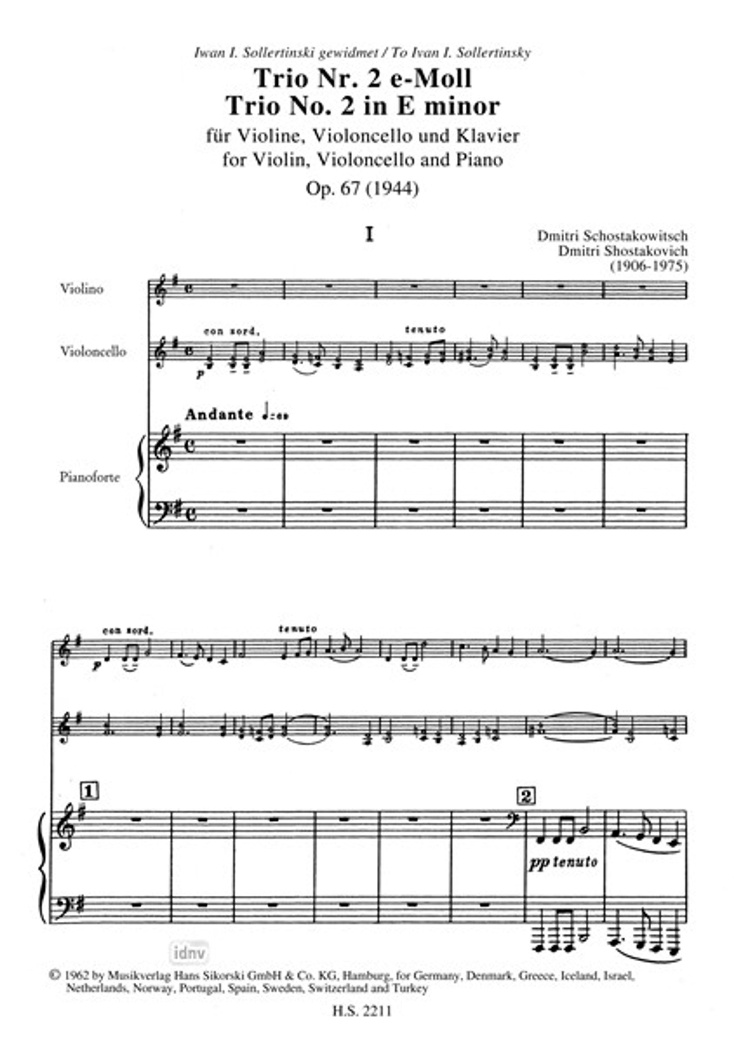 Dmitri Schostakowitsch: Trio Nr. 2 für Violine, Violoncello und Klavier op. 67