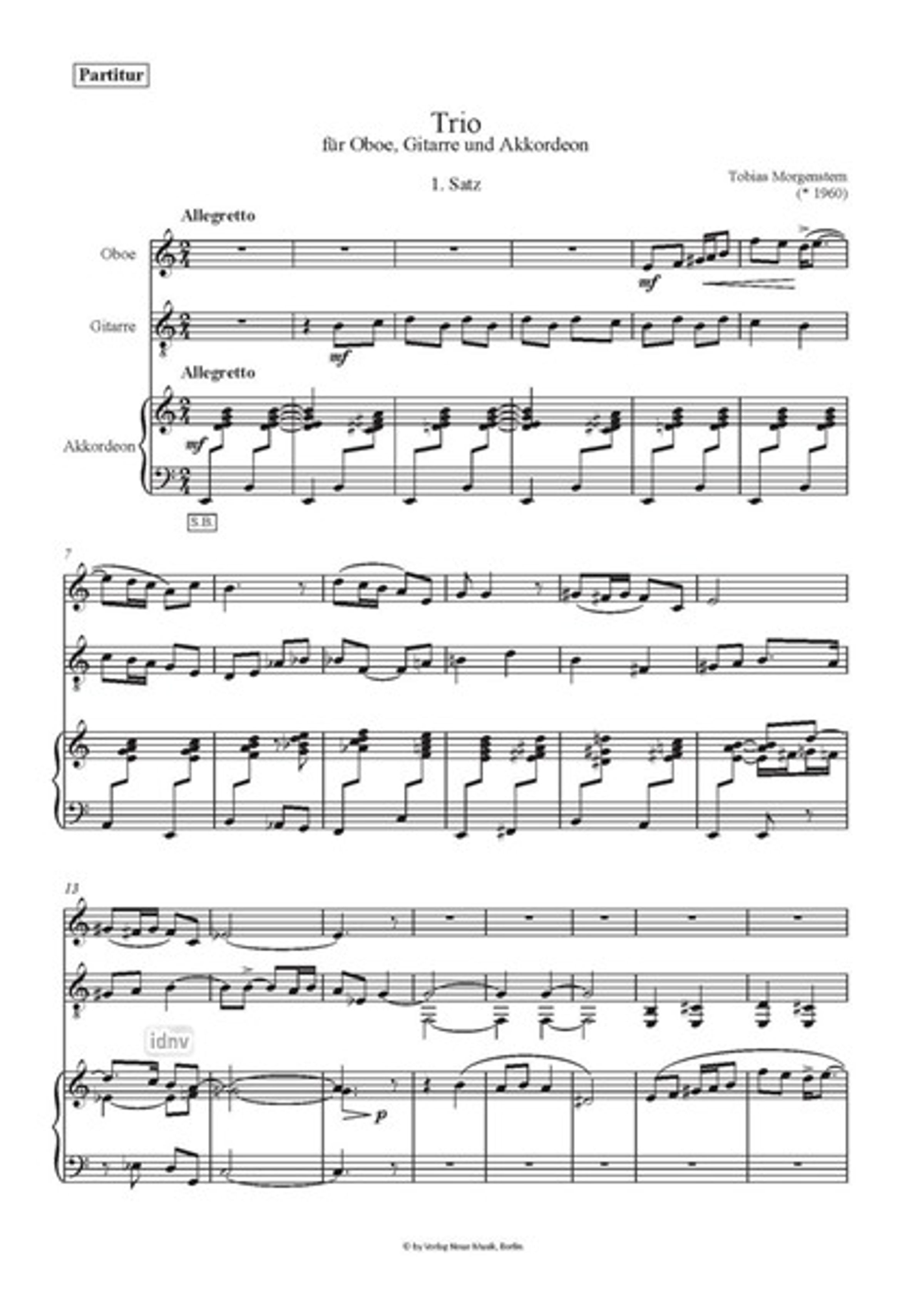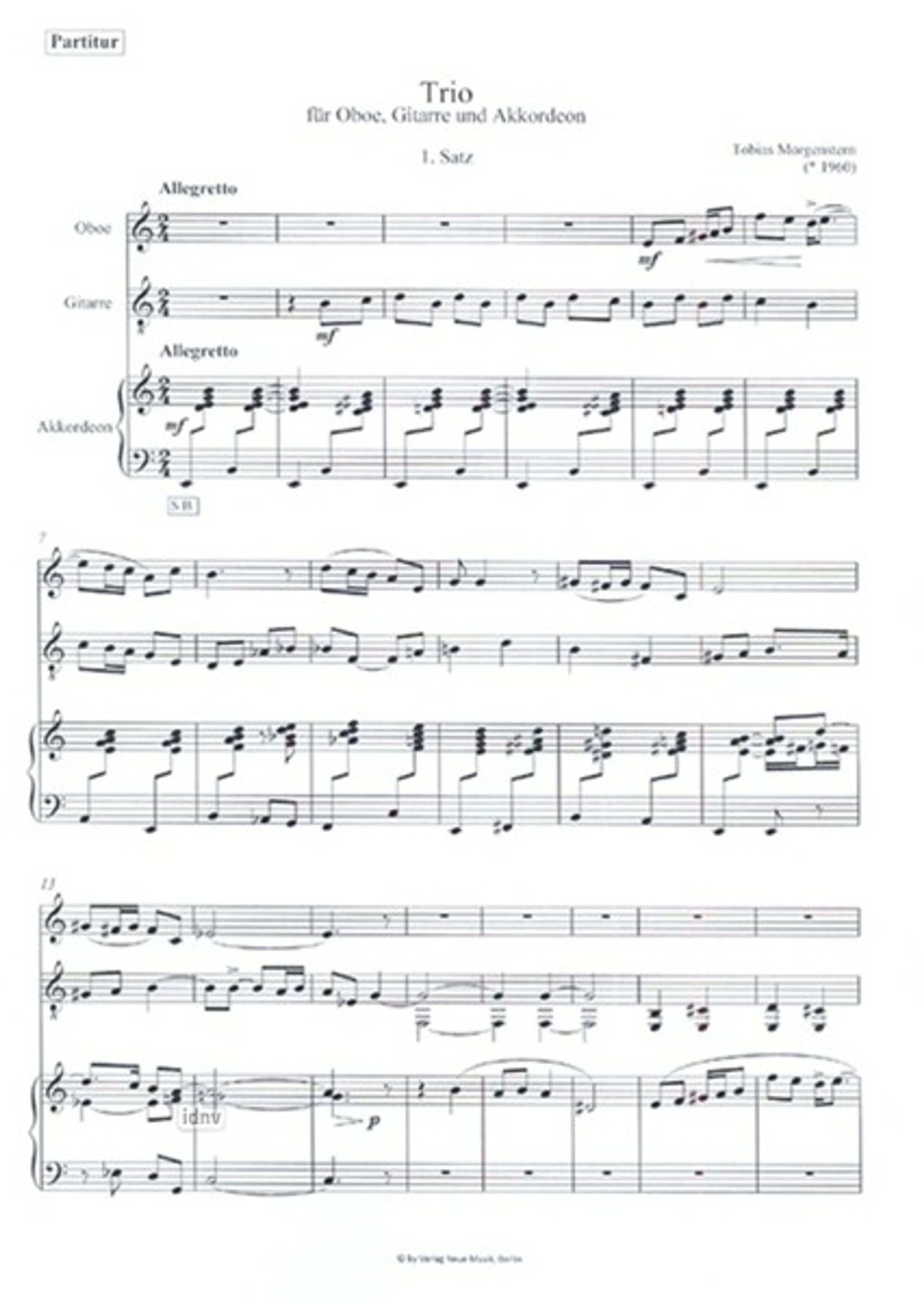 Tobias Morgenstern: Trio für Oboe, Gitarre und Akkordeon