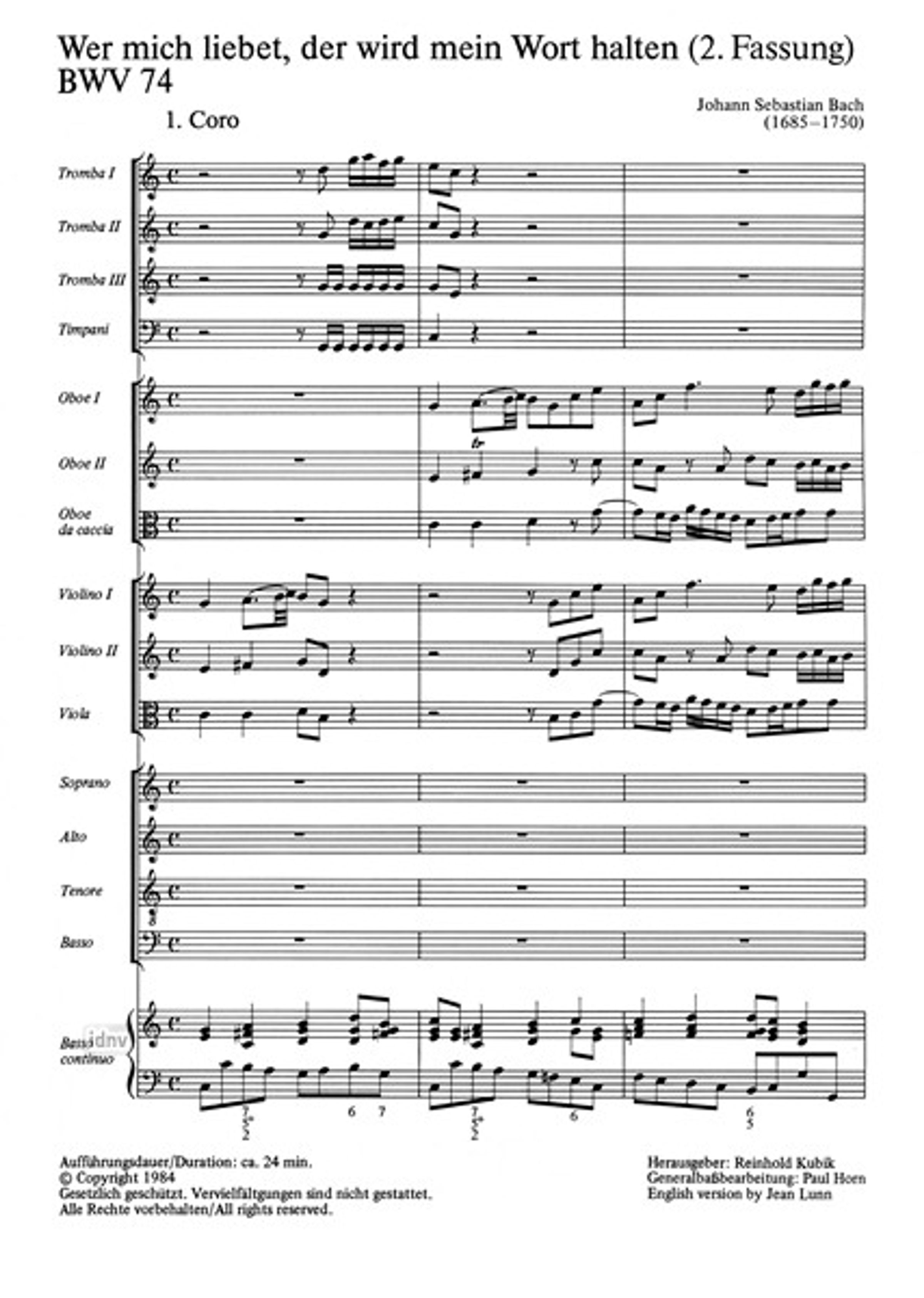 1. 1 Wer mich liebet, der wird mein Wort halten BWV 74