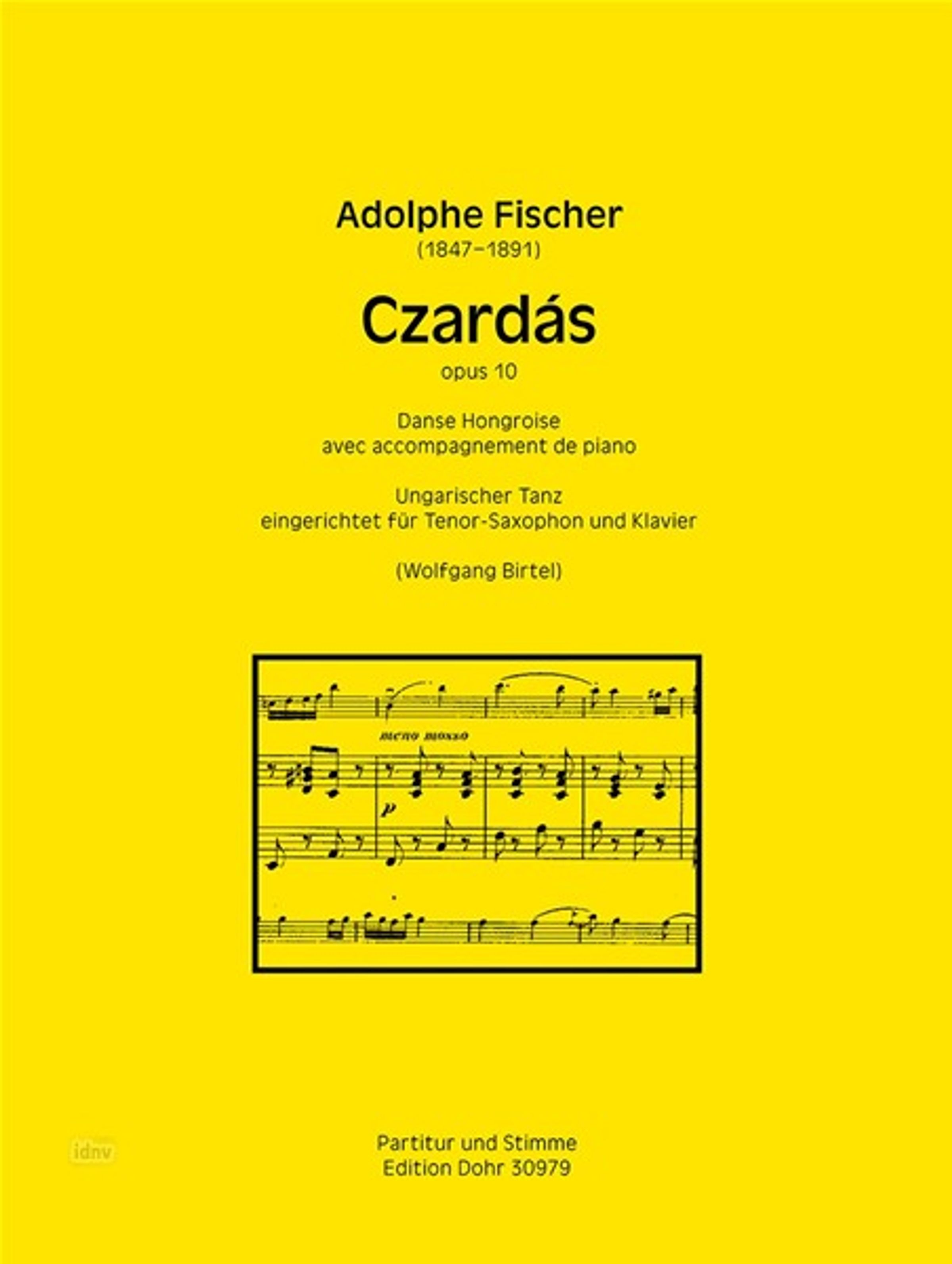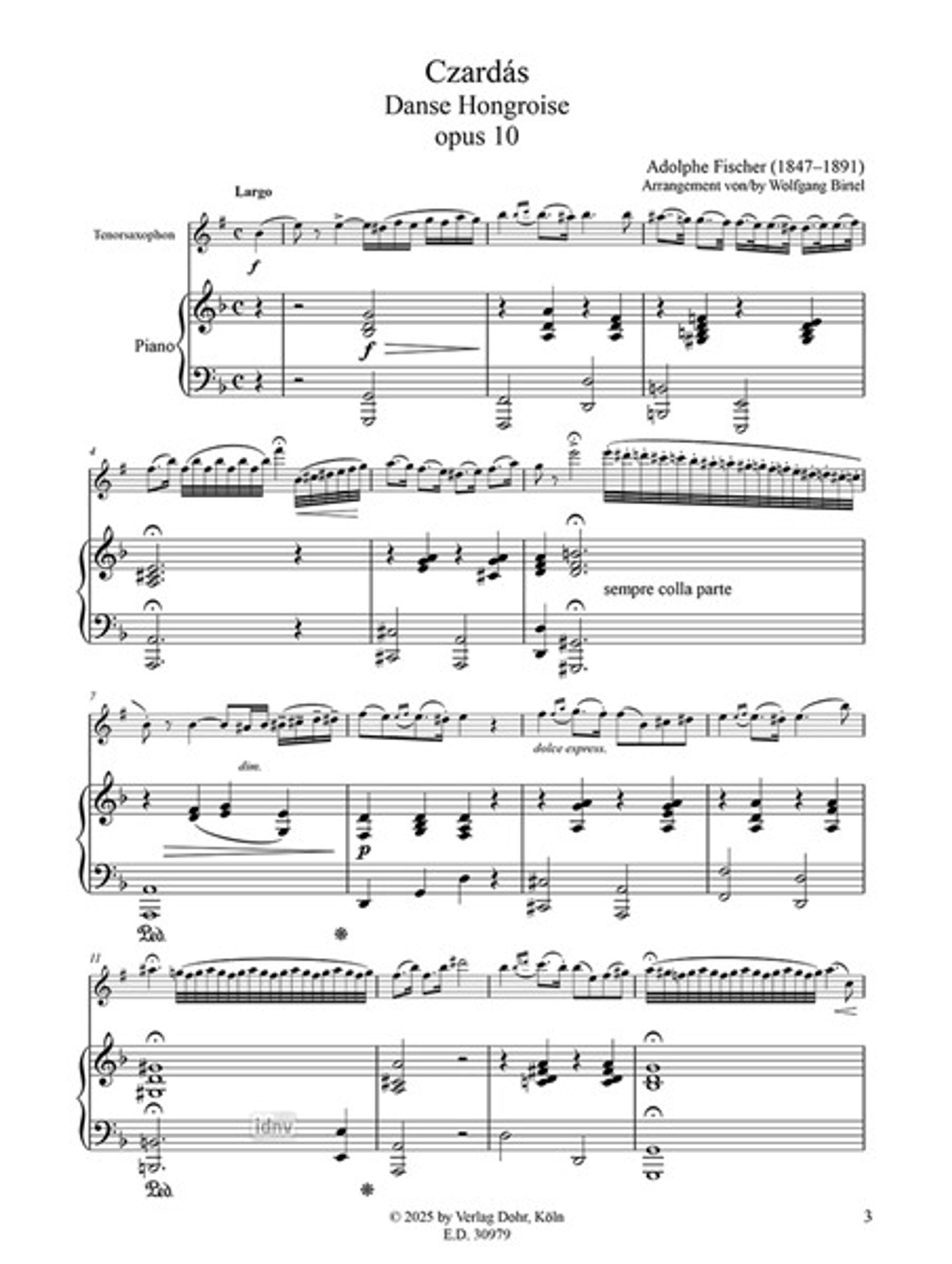 Notenblatt von "Czardás" von Adolphe Fischer, ungarischer Tanz für Tenor-Saxophon und Klavier, Arrangement von Wolfgang Birtel., Noten
