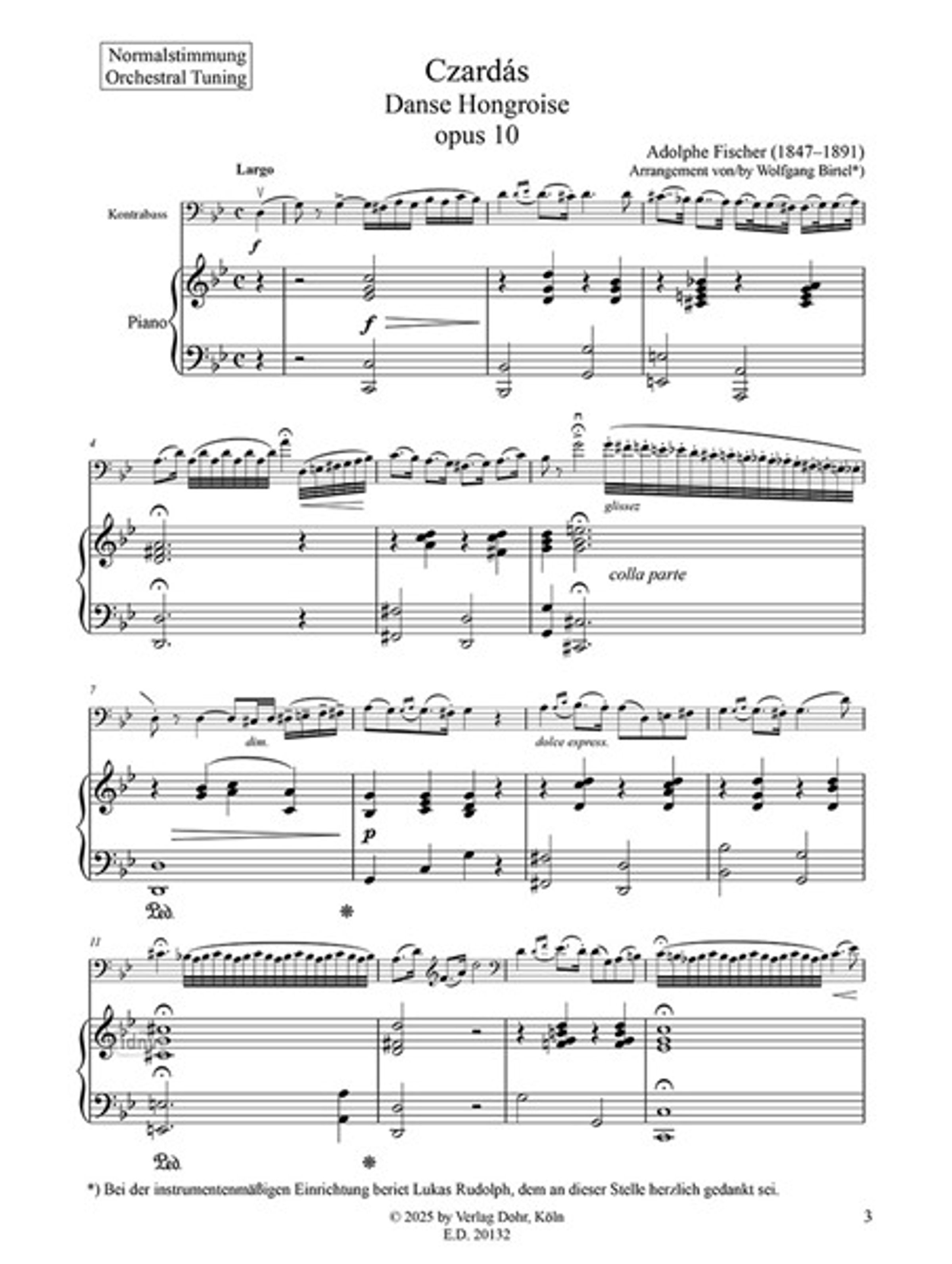 - Partitur in Normal- und Konzertstimmung (zgl. Klavierstimme) und Kontrabassstimm