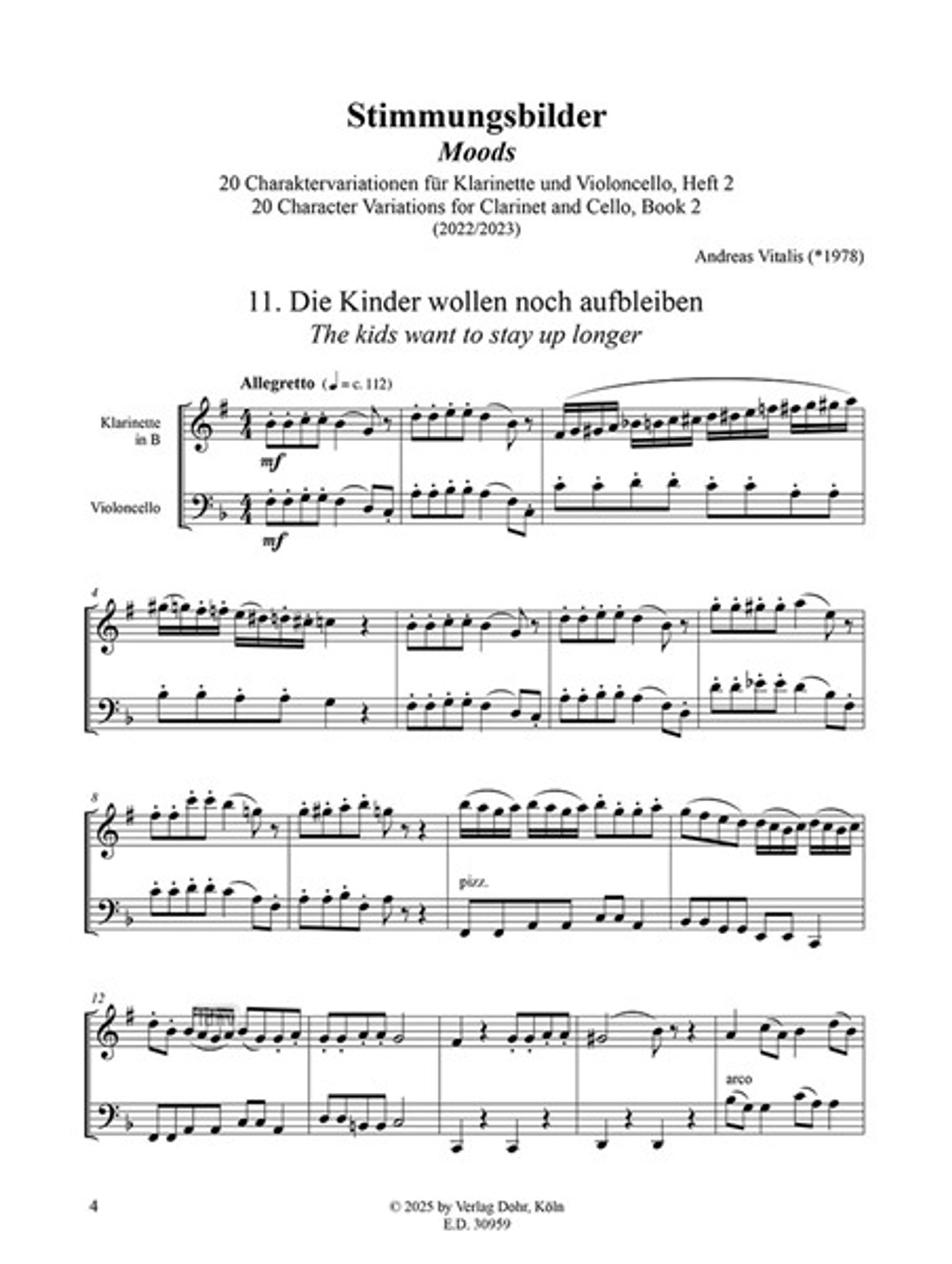 Andreas Vitalis: Stimmungsbilder für Klarinette und Violoncello, Noten