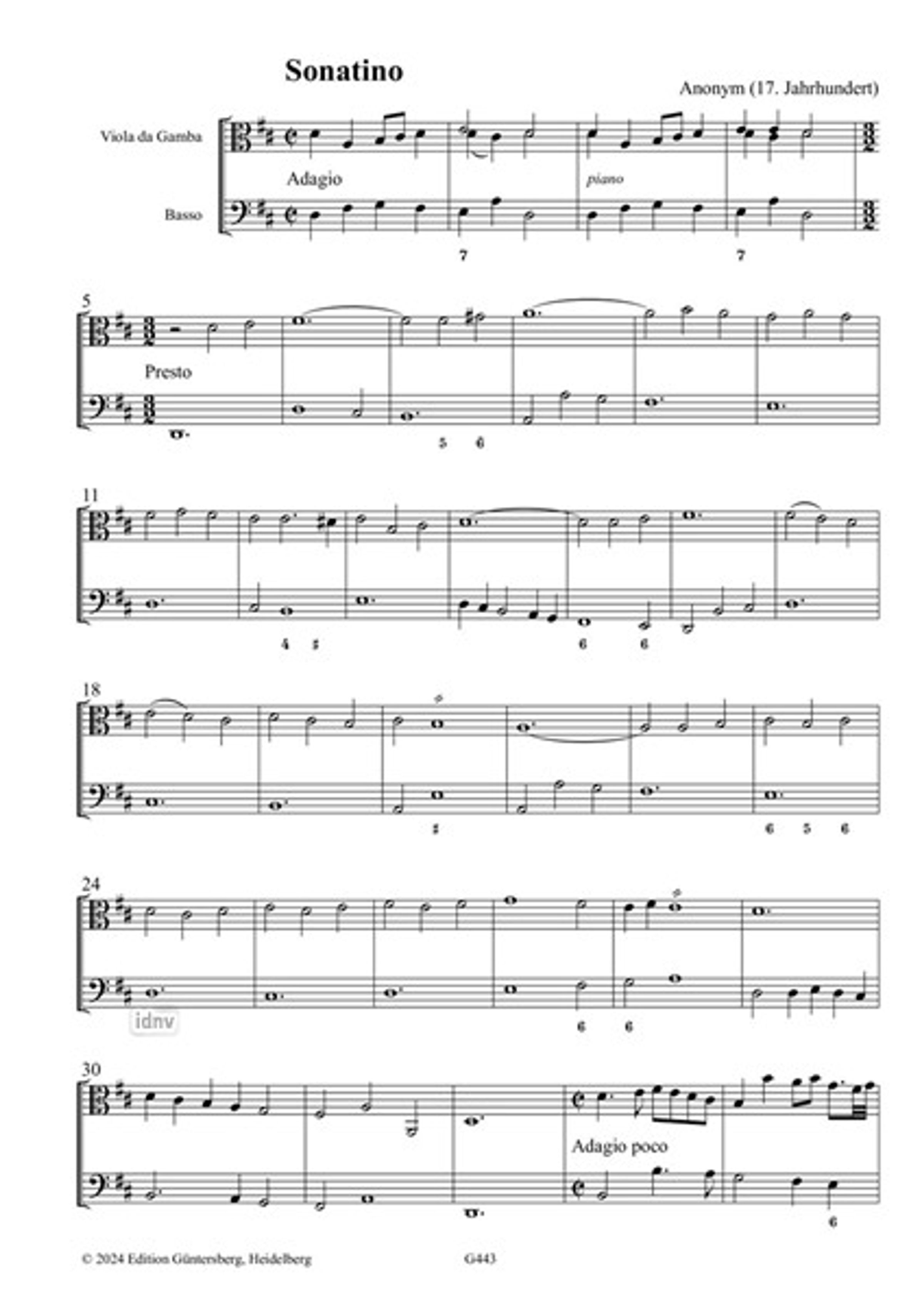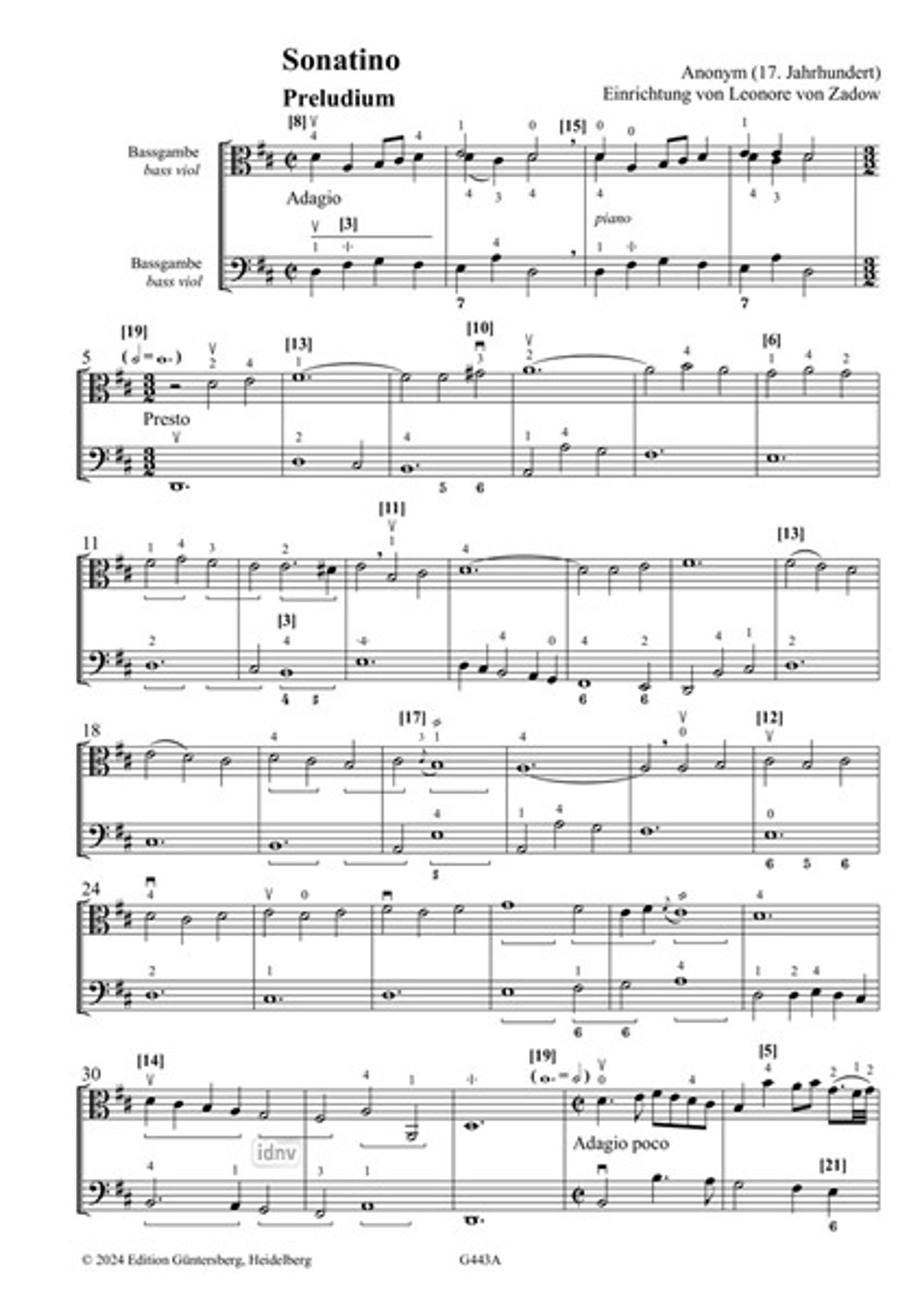 Anonym: Heidelberger Gambenstunde, "Sonatino" für Viola da Gamba und Basso continuo