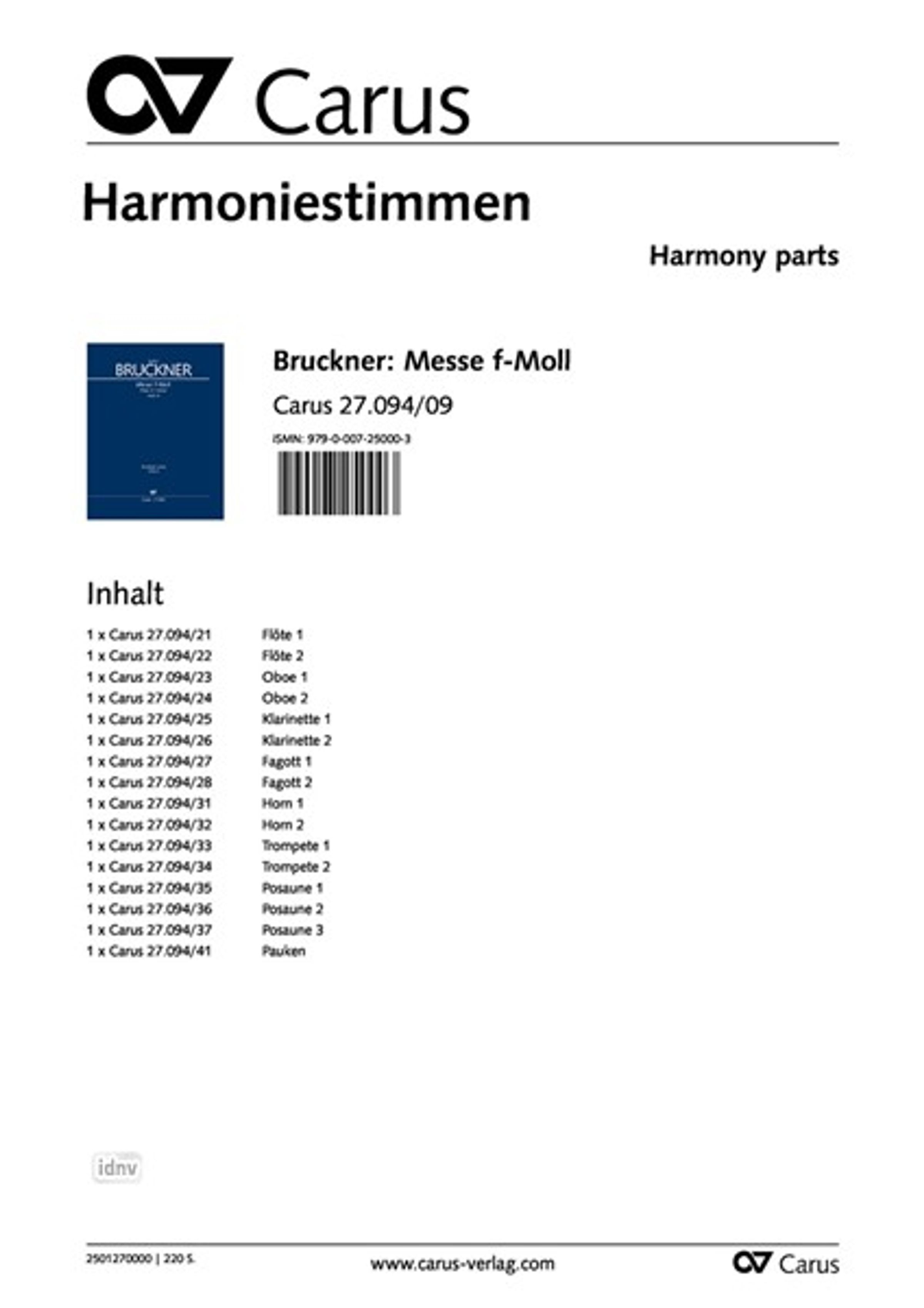 - Instrumentierung/Stimmen: