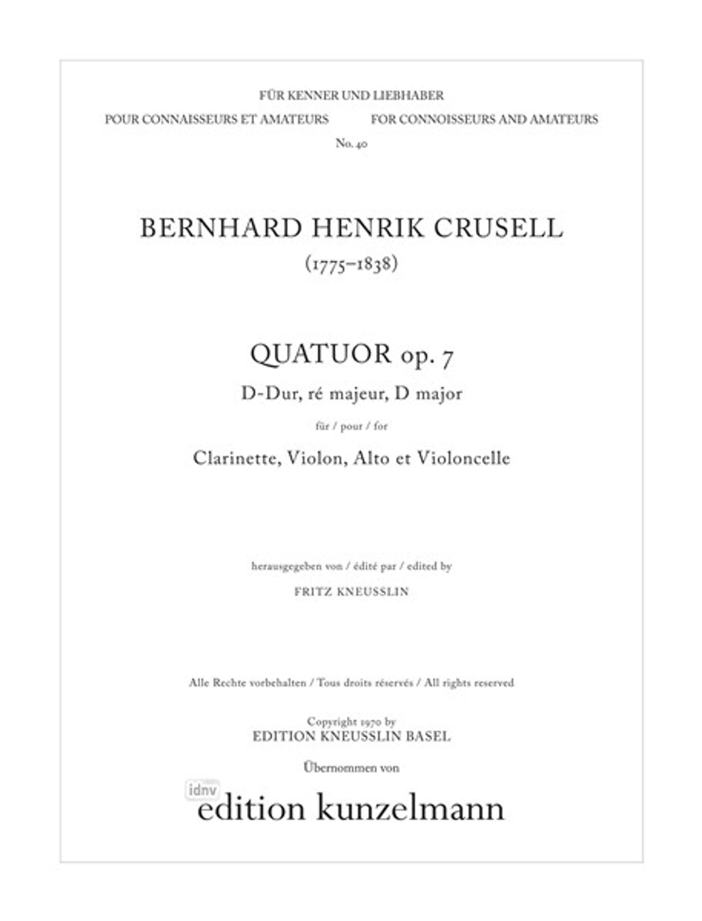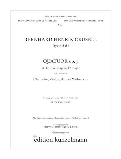 Bernhard Crusell: Quartett D-Dur op. 7