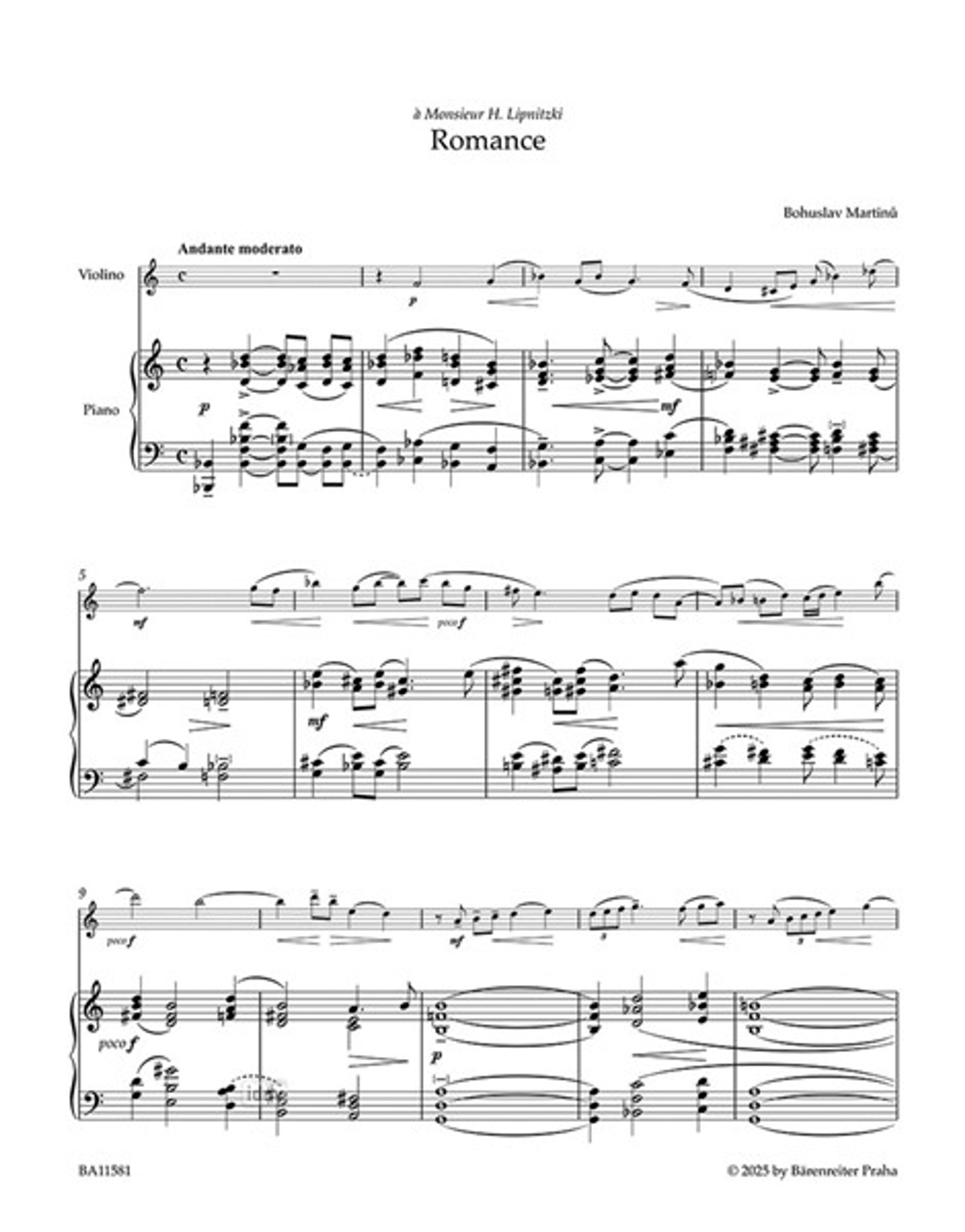 Bohuslav Martinu: Romanze für Violine und Klavier H 186bis