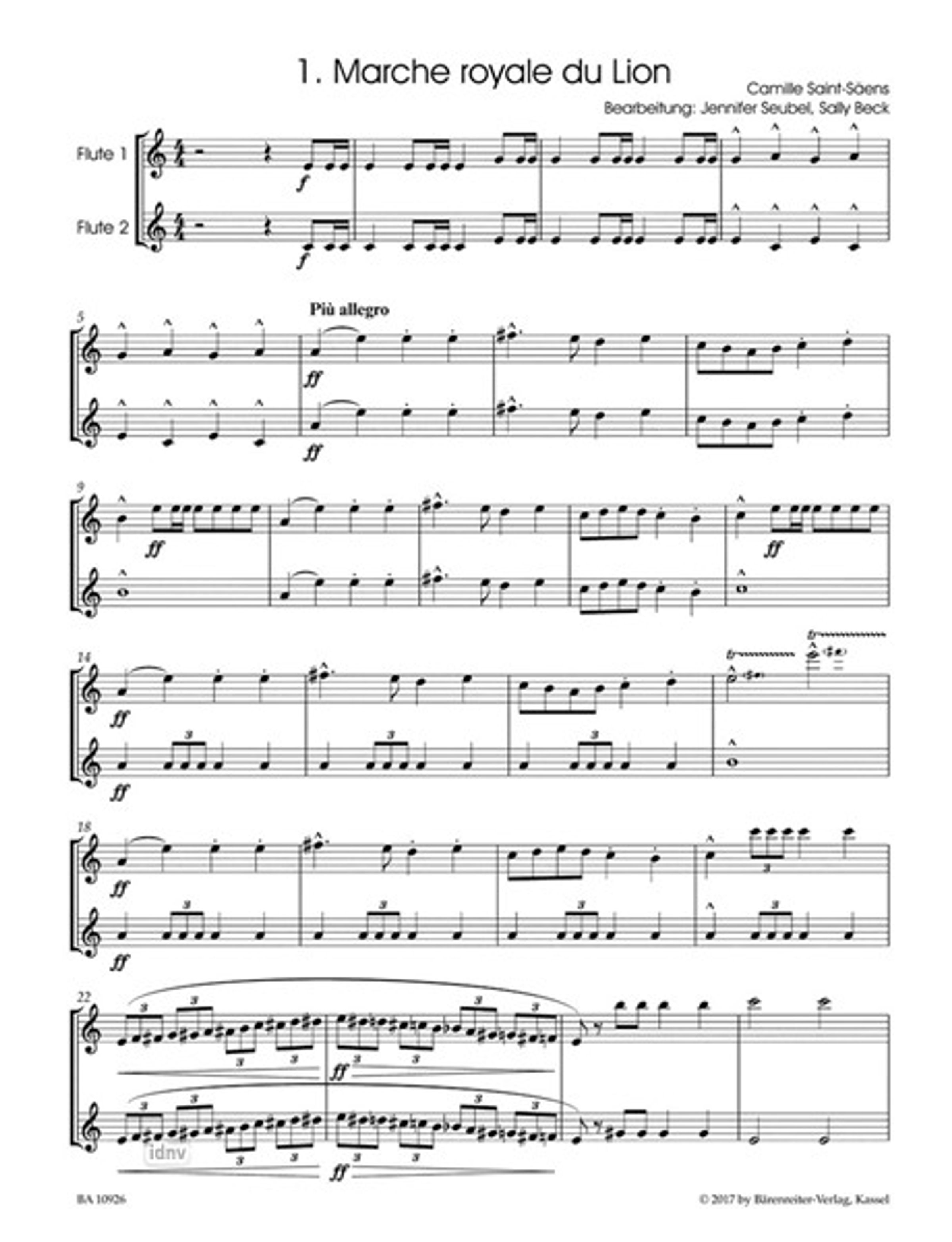 Camille Saint-Saens: Der Karneval der Tiere für zwei Querflöten, Noten, Noten
