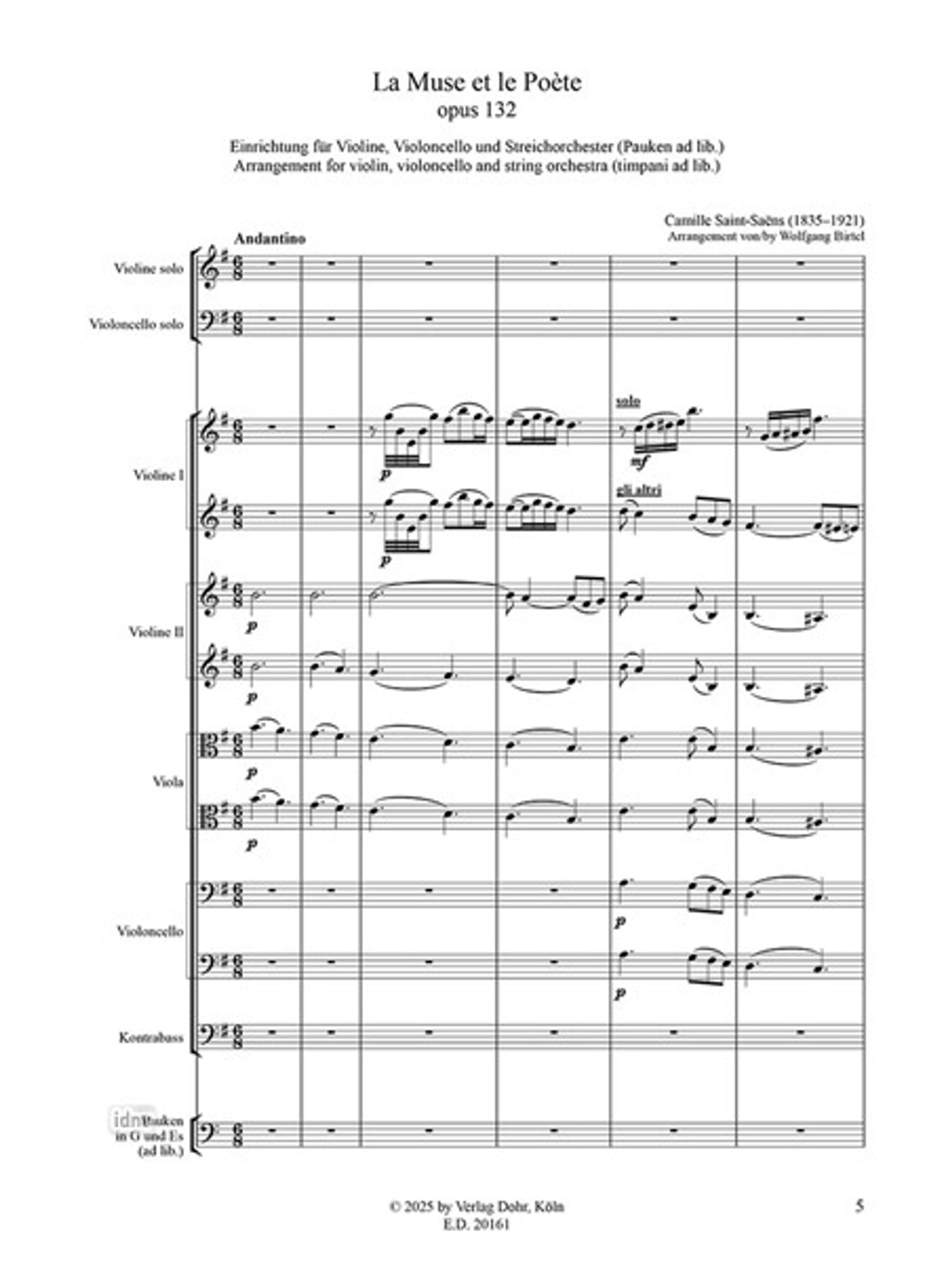- Violine, Cello, Streichorchester, Pauke (ad libitum)