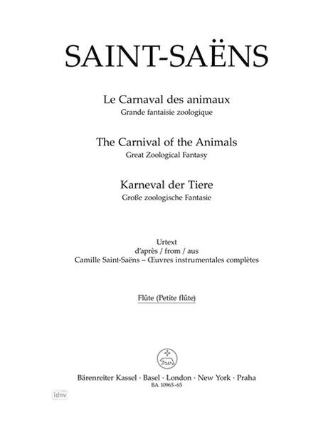 Camille Saint-Saens: Le Carnaval des animaux, Noten, Noten