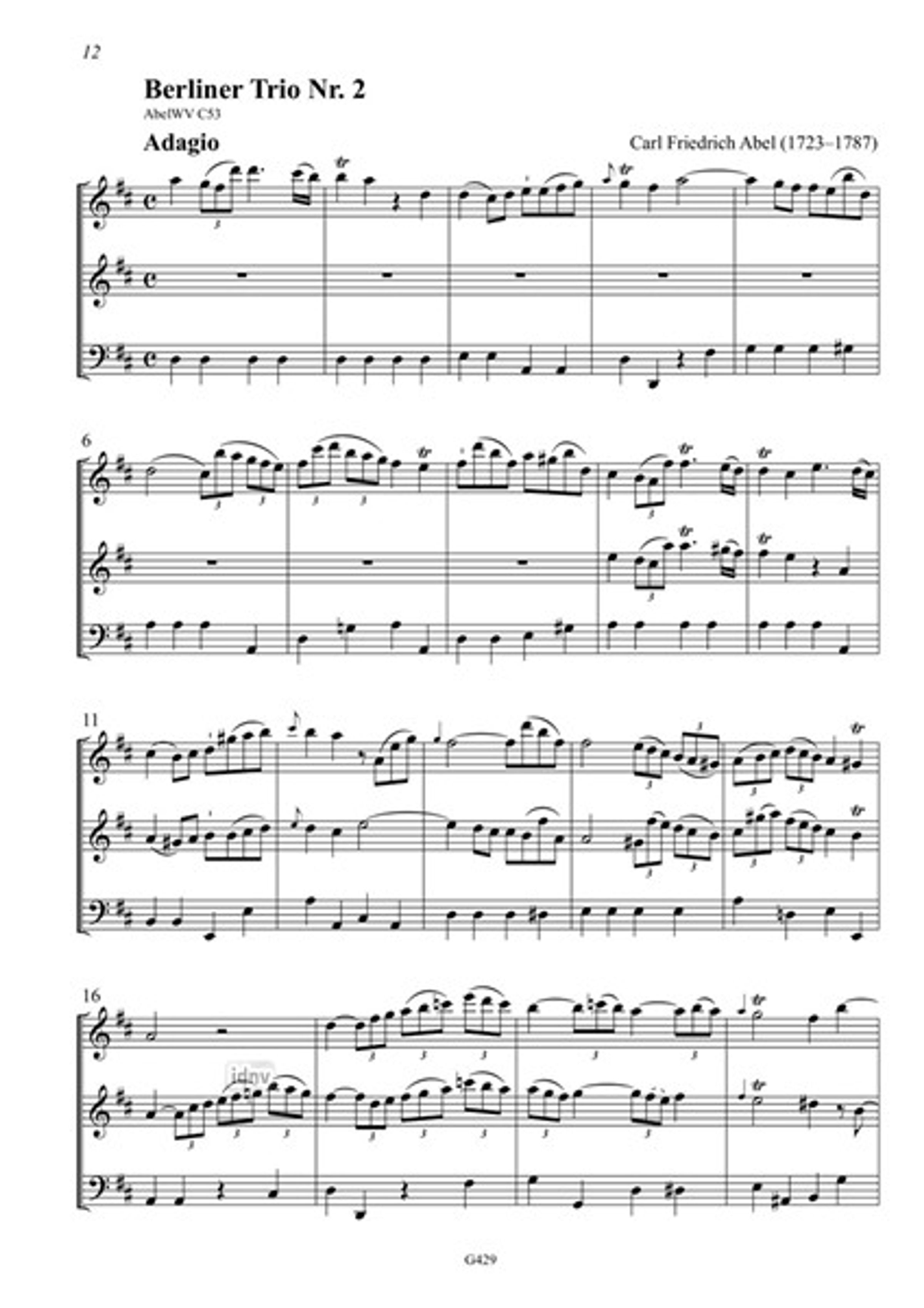 Sieben Berliner Trios, Nr. 1–2 für 2 Querflöten und Bass G-Dur und D-Dur AbelWV C52–53