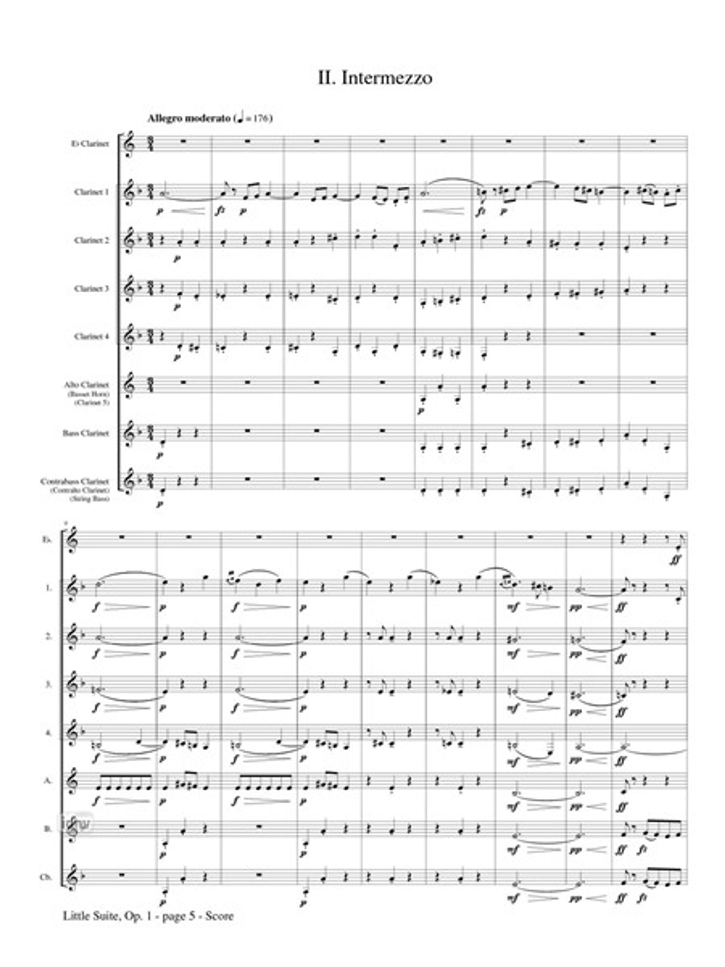 - E-flat Klarinette, 4 B-Flat Klarinette, Alt-Klarinette (oder Basset Horn, 5. Klarinette), Bass-Klarinette, Kontrabass-Klarinette (oder Contralto Klarinette, Kontrabass)