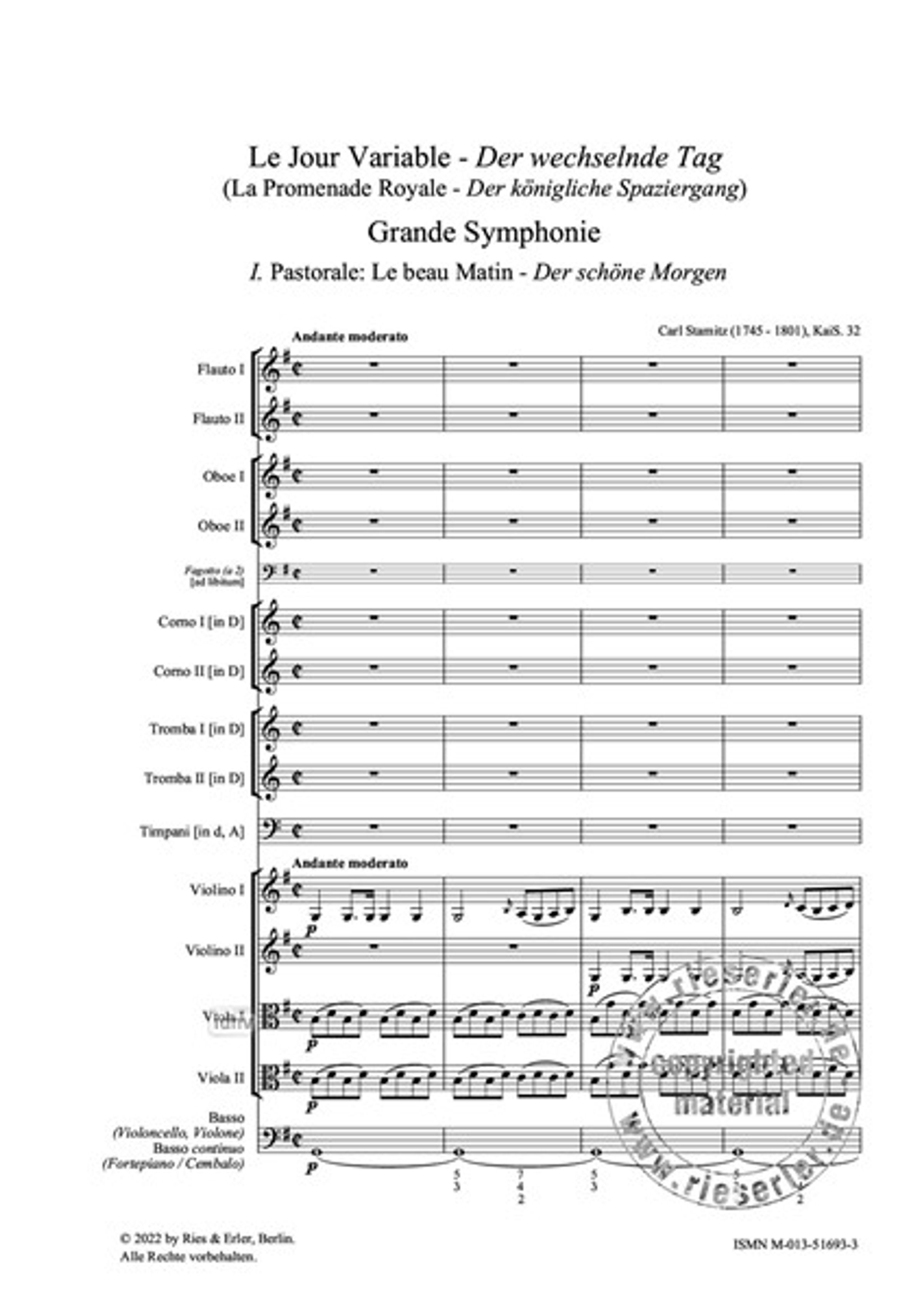 Carl Stamitz: Le Jour Variable (La Promenade Royale), Noten, Noten