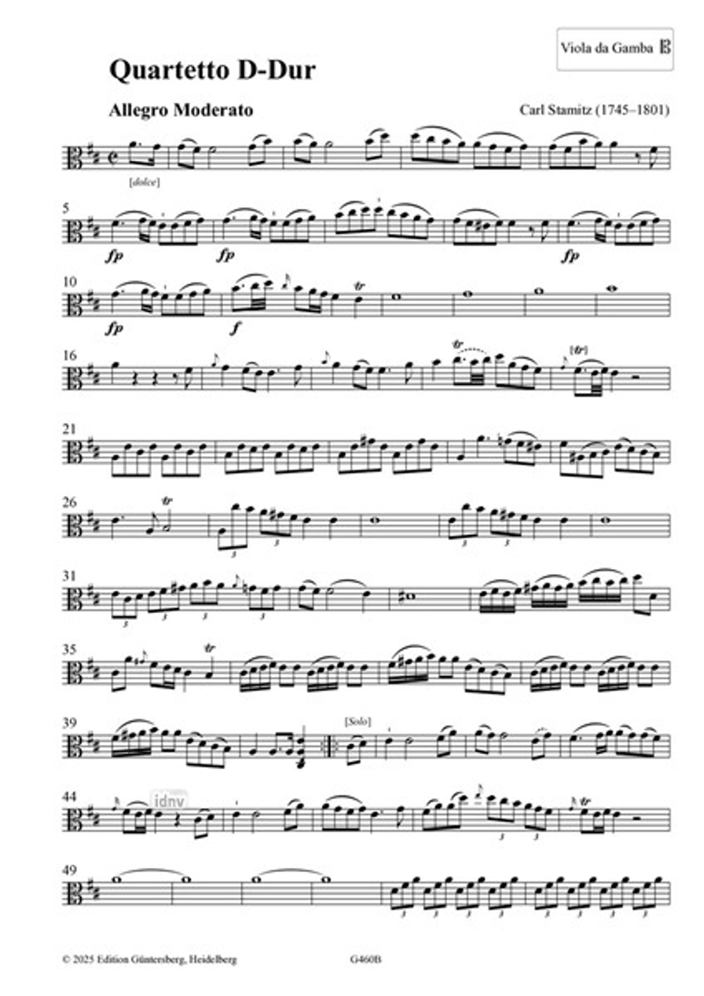 Carl Stamitz: Quartetto D-Dur für Viola da Gamba, Violine, Viola und Violoncello DTB 16: D 29 (ca. 1790)
