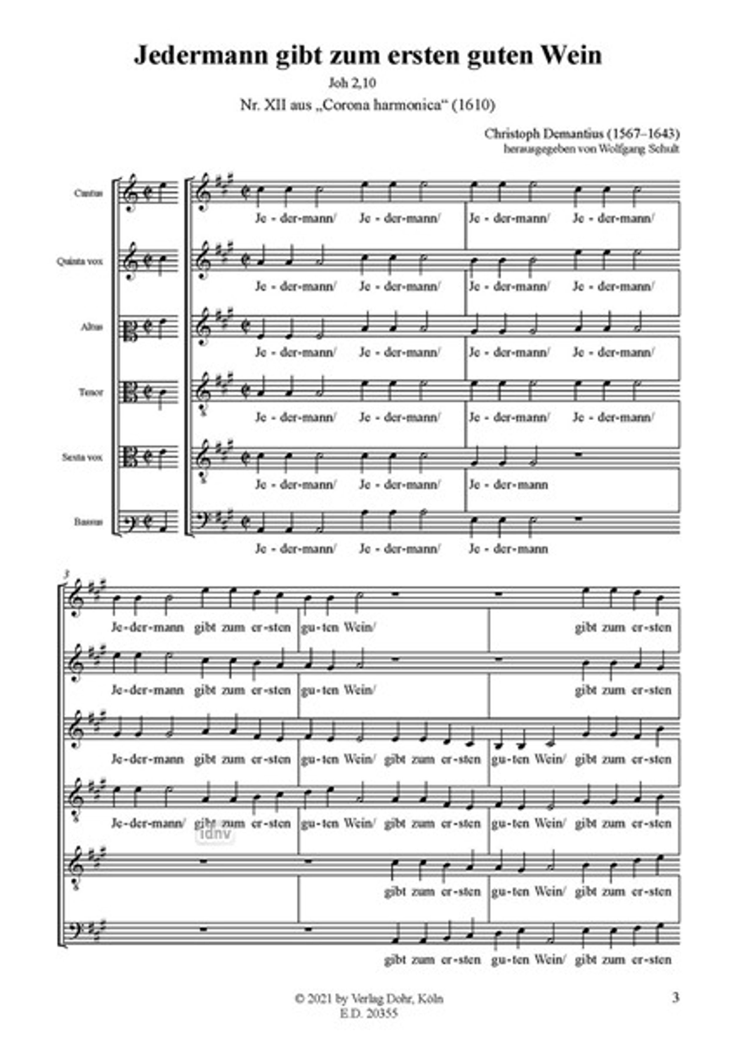 Jedermann gibt zum ersten guten Wein zu sechs Stimmen a cappella (1610)