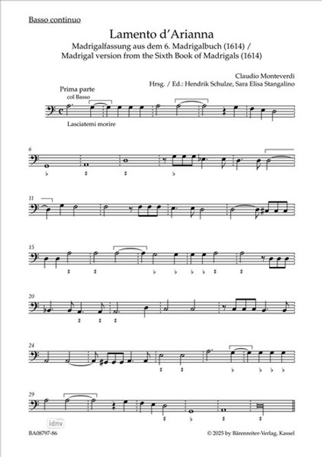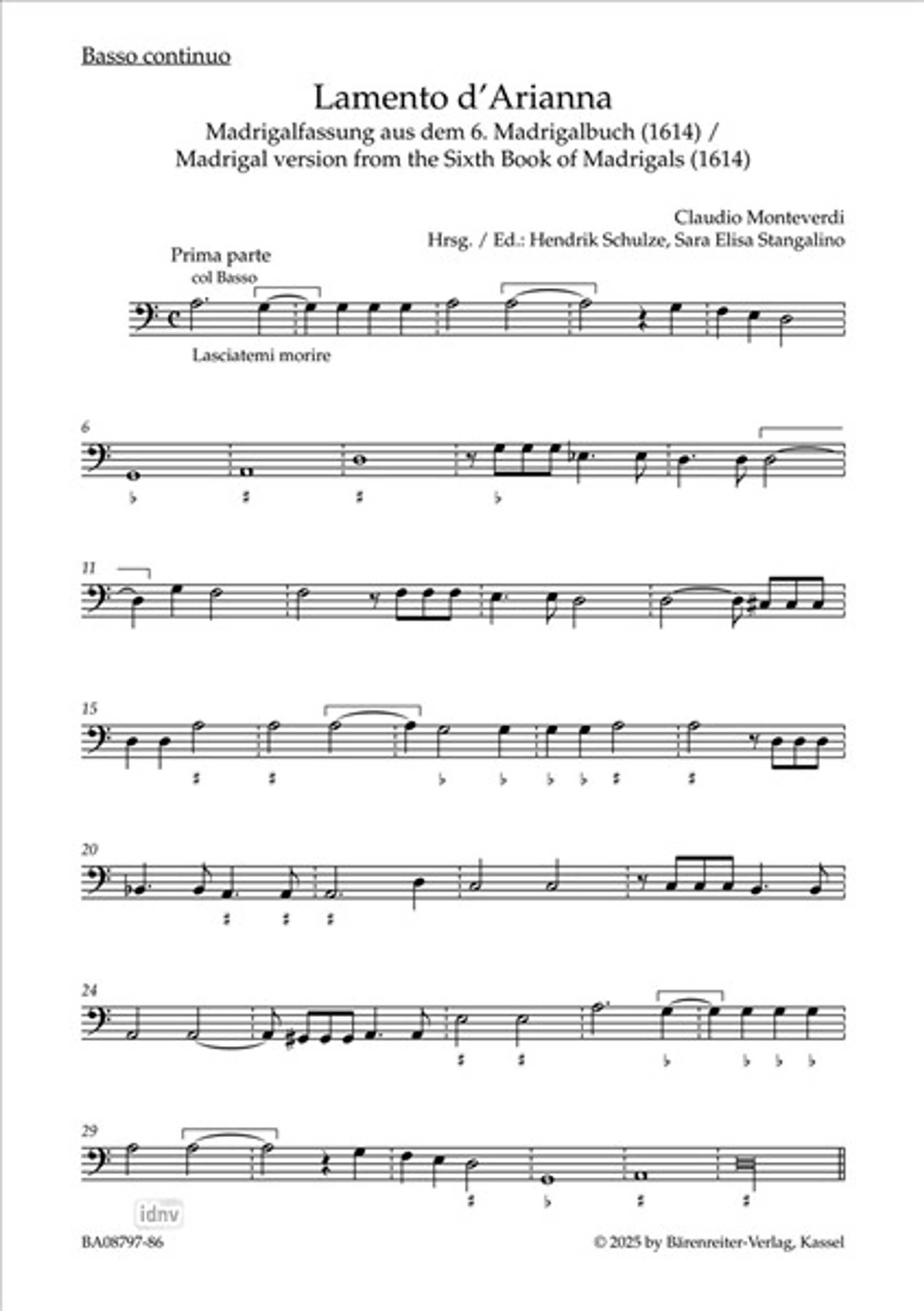 Lamento d'Arianna für 5 (Sing-)Stimmen (SSATB) und Basso continuo