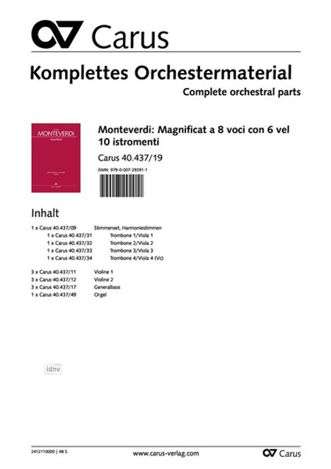 Claudio Monteverdi: Magnificat a 8 voci con 6 vel 10 istromenti (1640), Noten, Noten