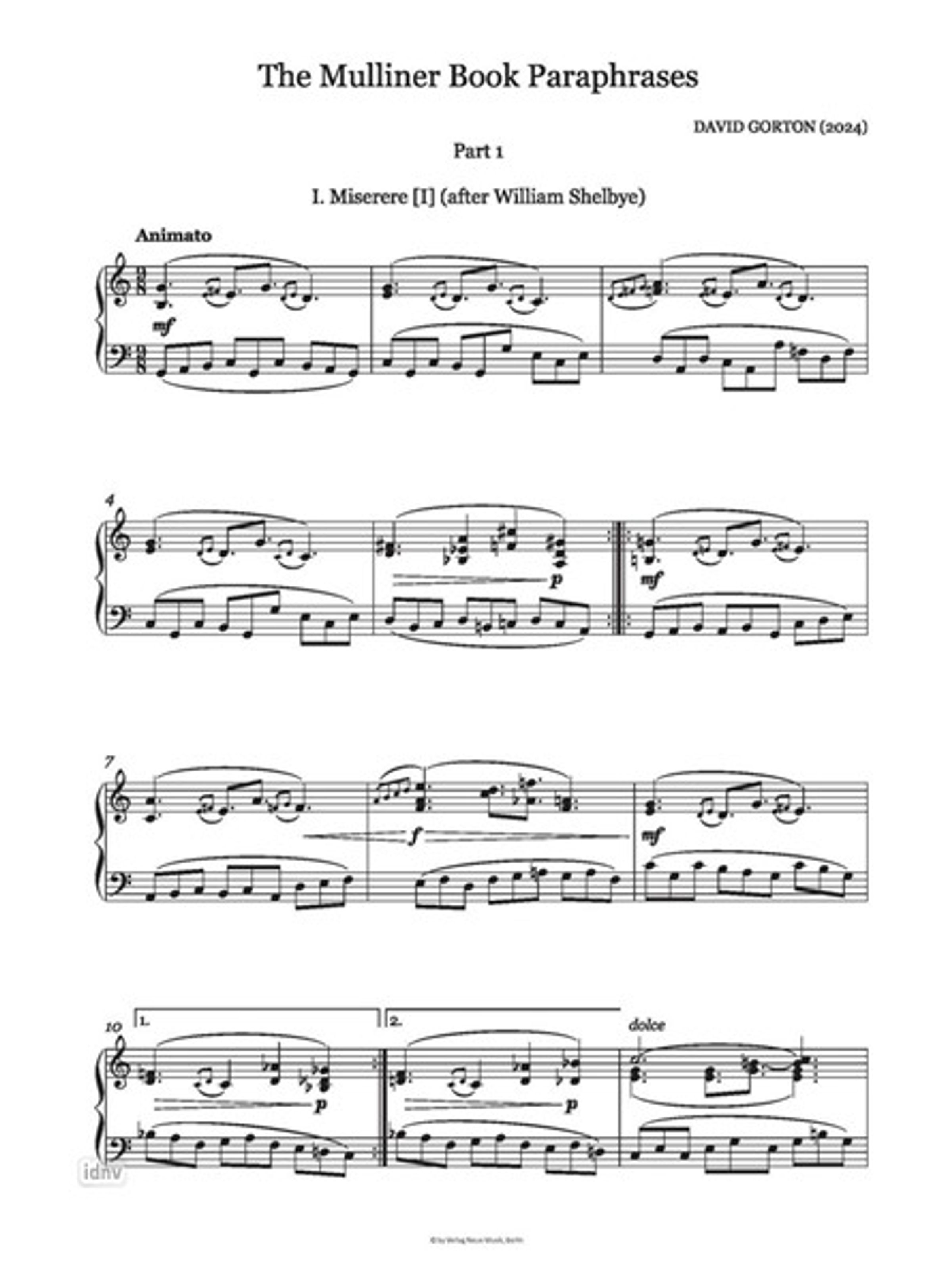 David Gorton: The Mulliner Book Paraphrases für Klavier (2024), Noten