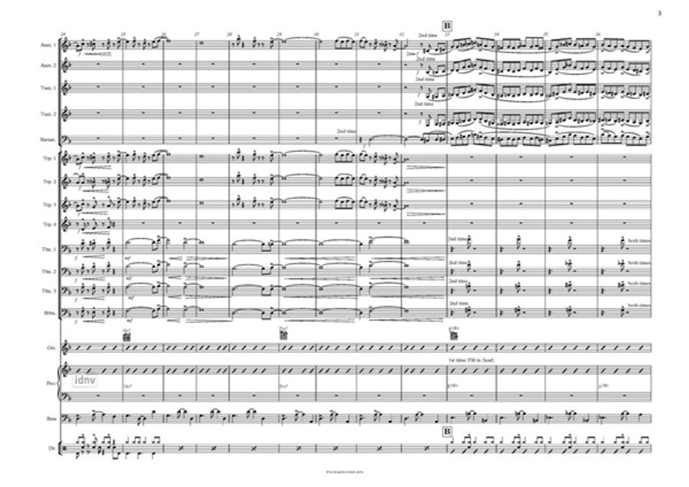 - Alt-Saxophon (2), Tenor-Saxophon (2), Bariton-Saxophon, Trompete (4), Posaune (3), Bass-Posaune, Gitarre, Klavier, Bas